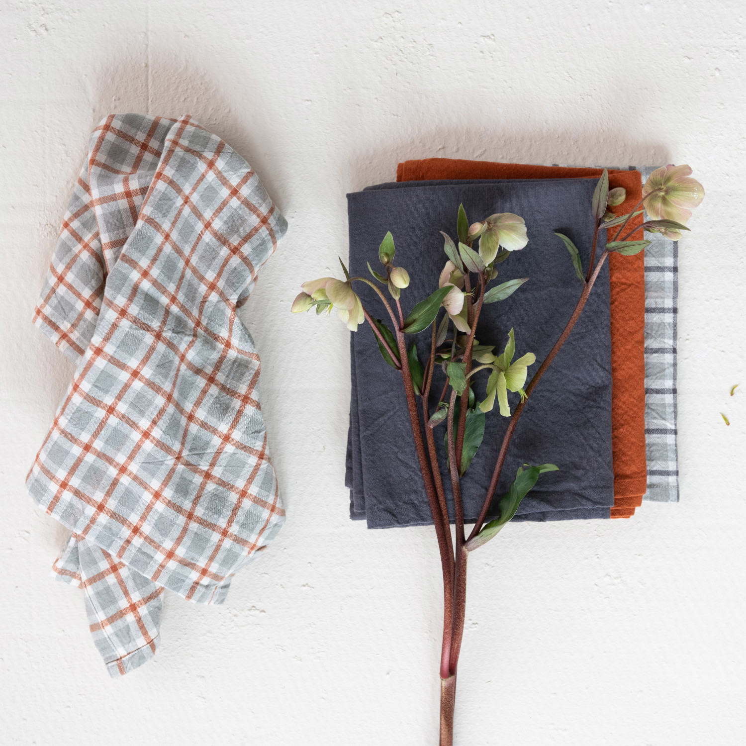This stylishly versatile set of tea towels showcases 4 bold hues. Machine Wash Warm, Gentle Cycle, Do Not Bleach, Tumble Dry Low, Warm Iron if Needed.