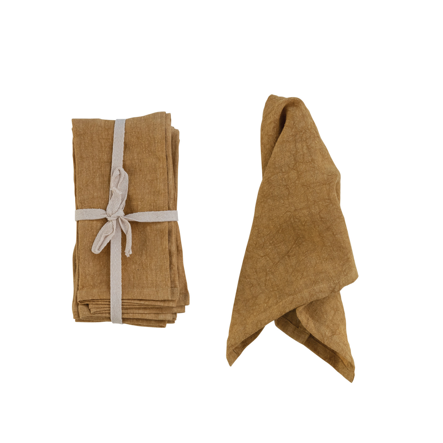 Catalog Name: 18" Square Stonewashed Linen Napkins, Mustard Color, Set of 4