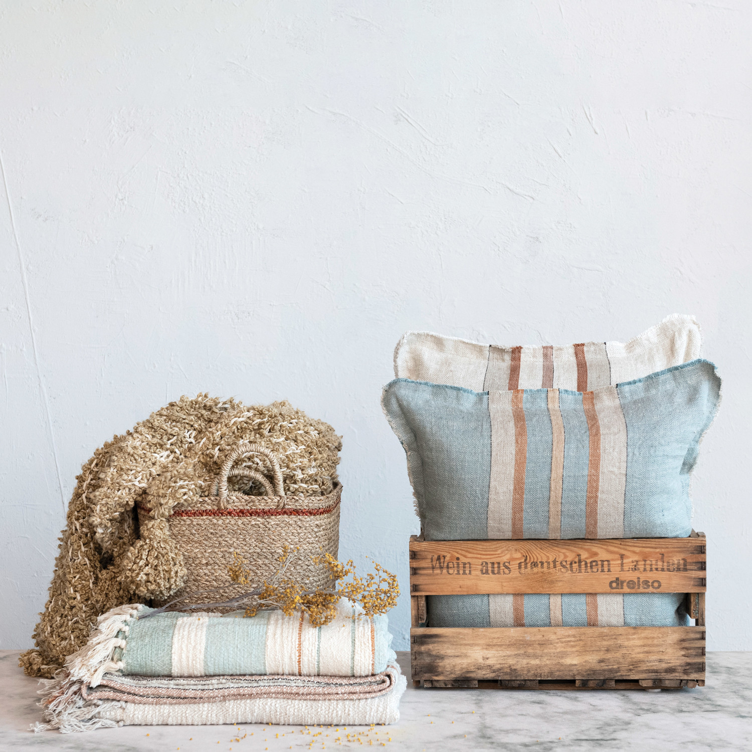 Woven Linen & Cotton Table Runner w/ Stripes & Fringe