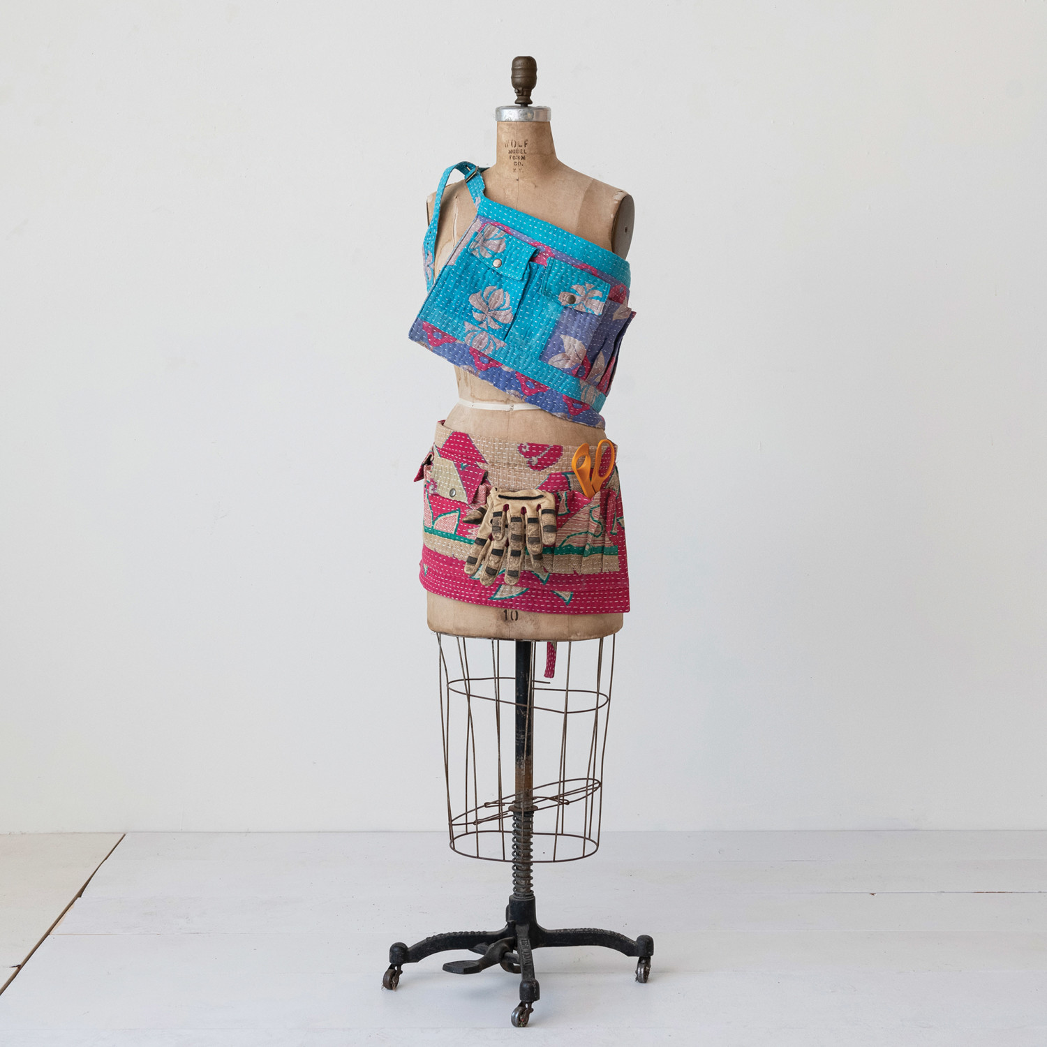 Vintage Kantha Fabric Half Apron w/ Canvas Back & 6 Pockets (Each One Will Vary)
