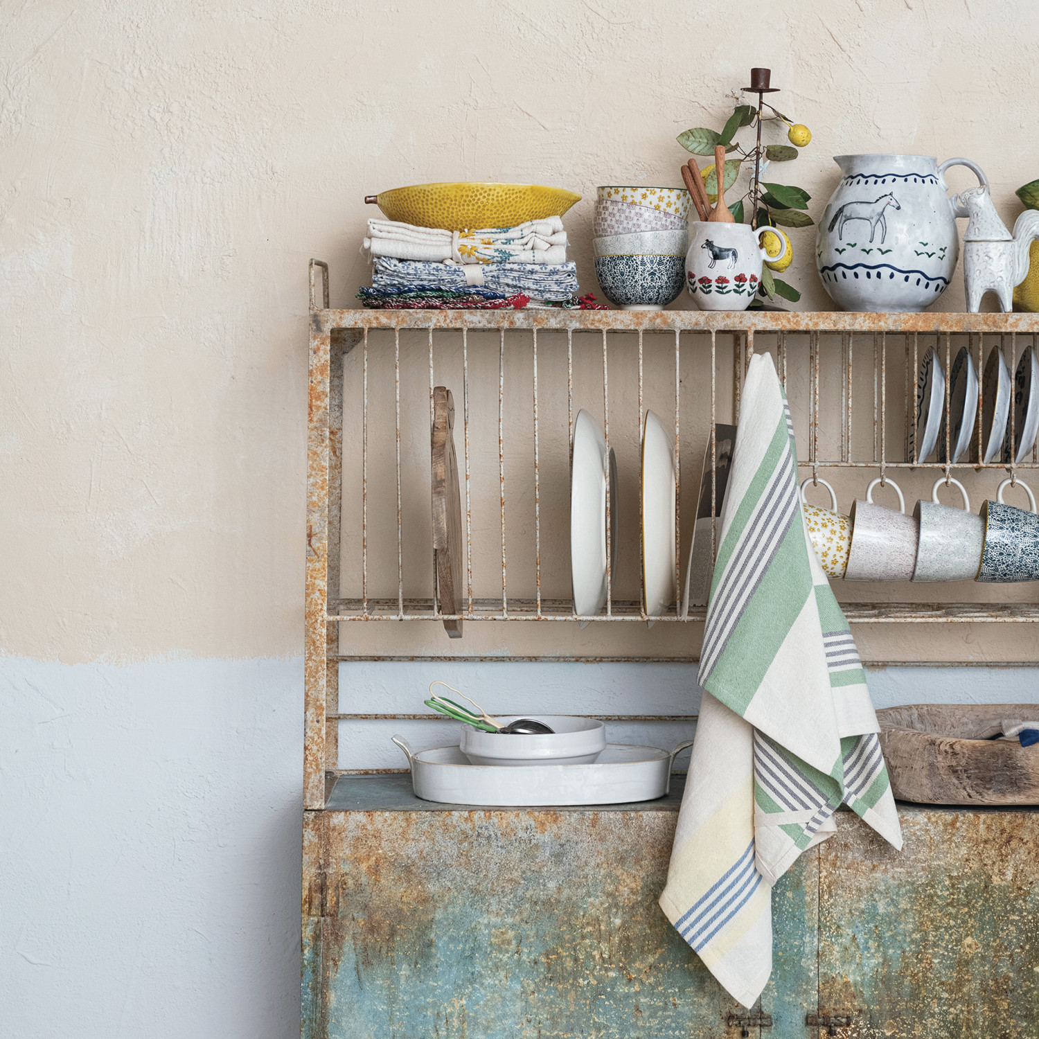 Woven Cotton Tea Towel w/ Stripes, 2 Styles