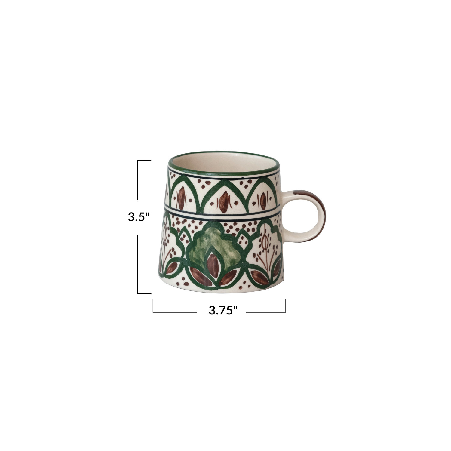 10 oz. Hand-Painted Stoneware Mug w/ Design, Cream Color, Brown & Green