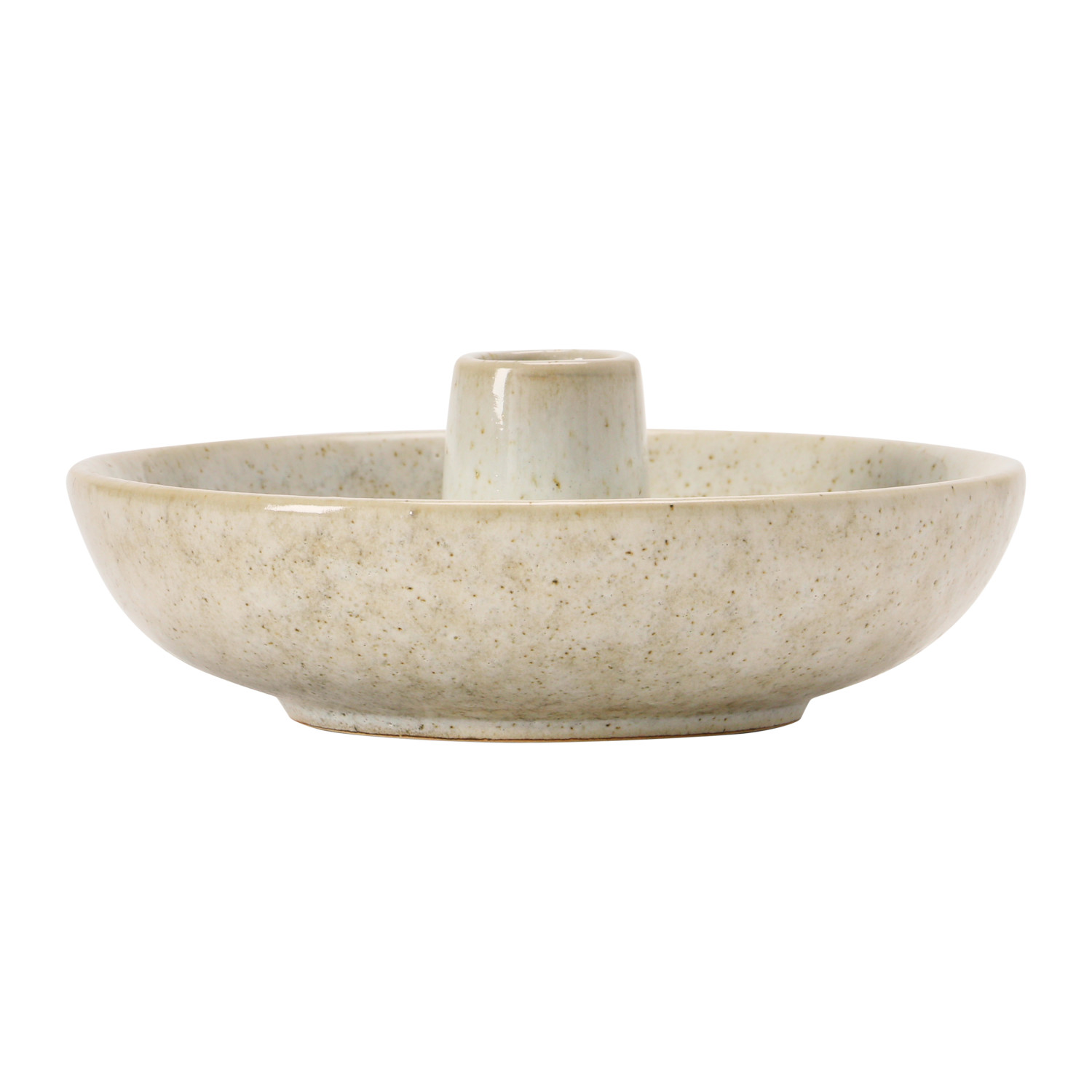 Catalog Name: 5" Round x 1-3/4"H Stoneware Dish w/ Toothpick Holder, Reactive Glaze, White (Each One Will Vary)