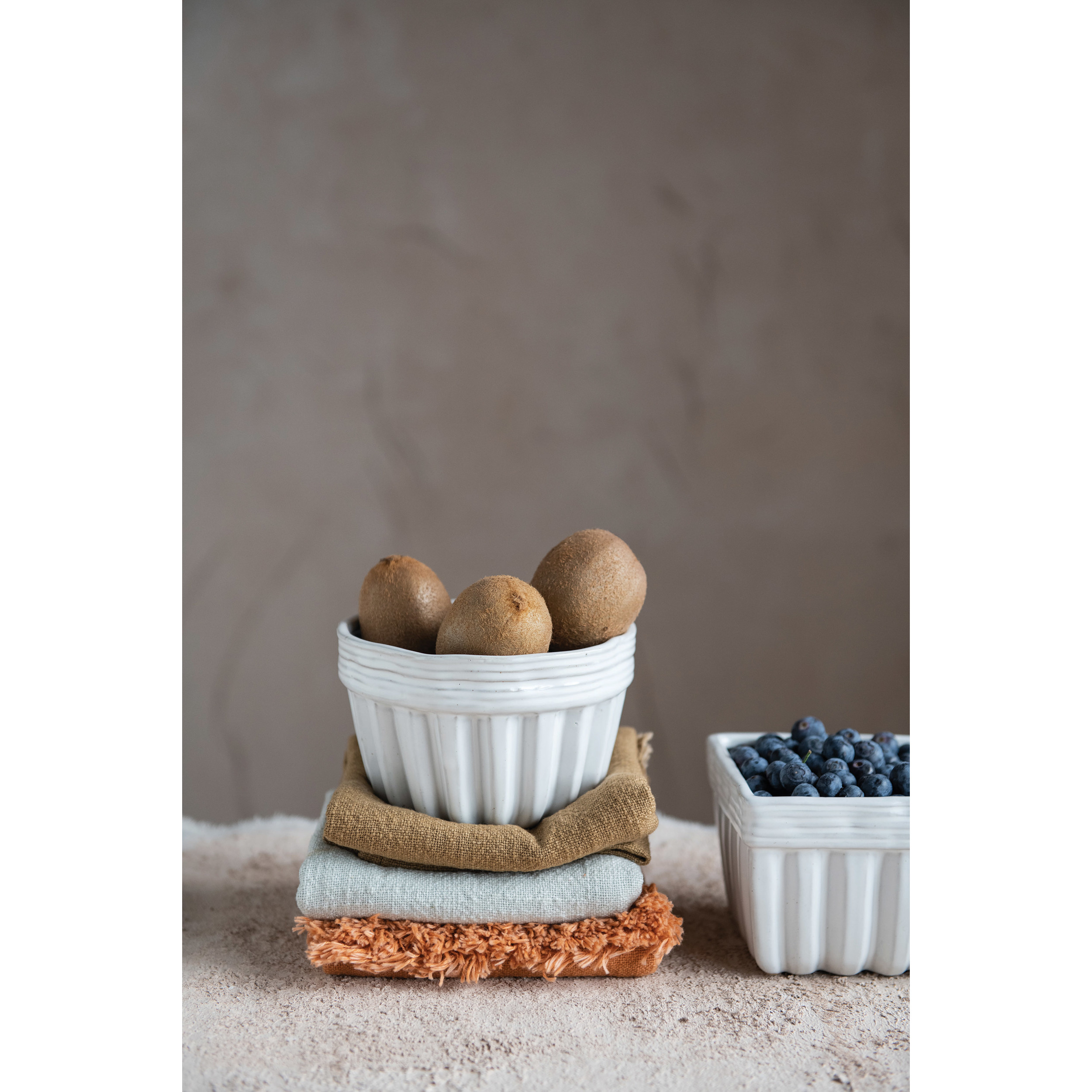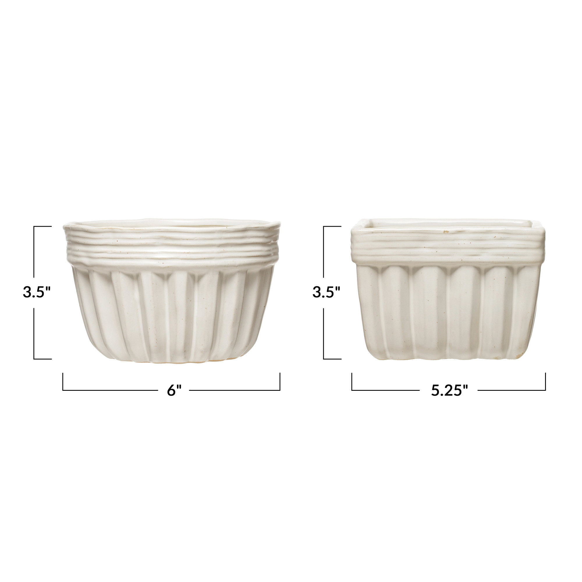 Catalog Name: 5-1/4” Square x 3-1/2"H & 6” Round x 3-1/2”H Stoneware Bowl, Reactive Glaze, White, 2 Styles (Each One Will Vary)