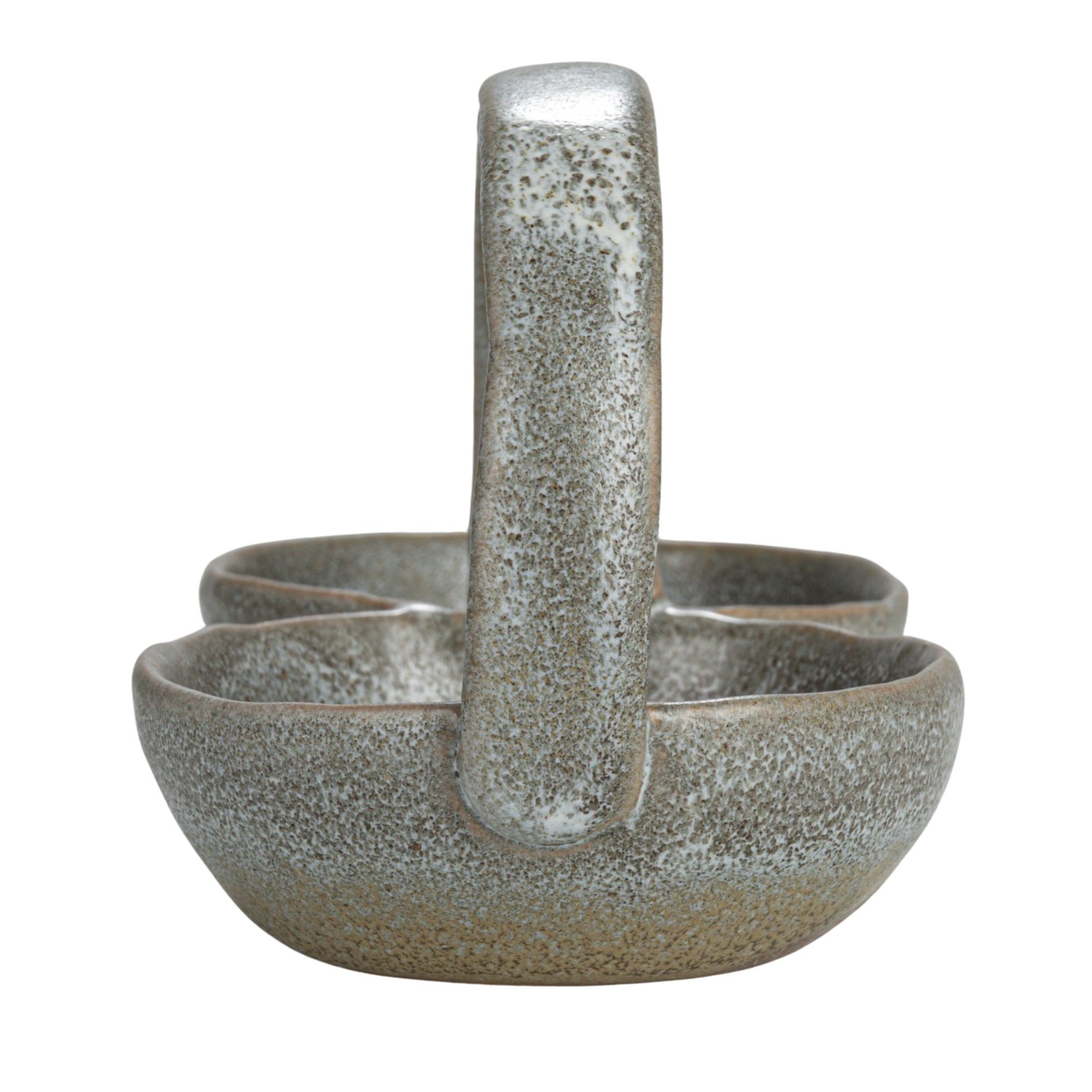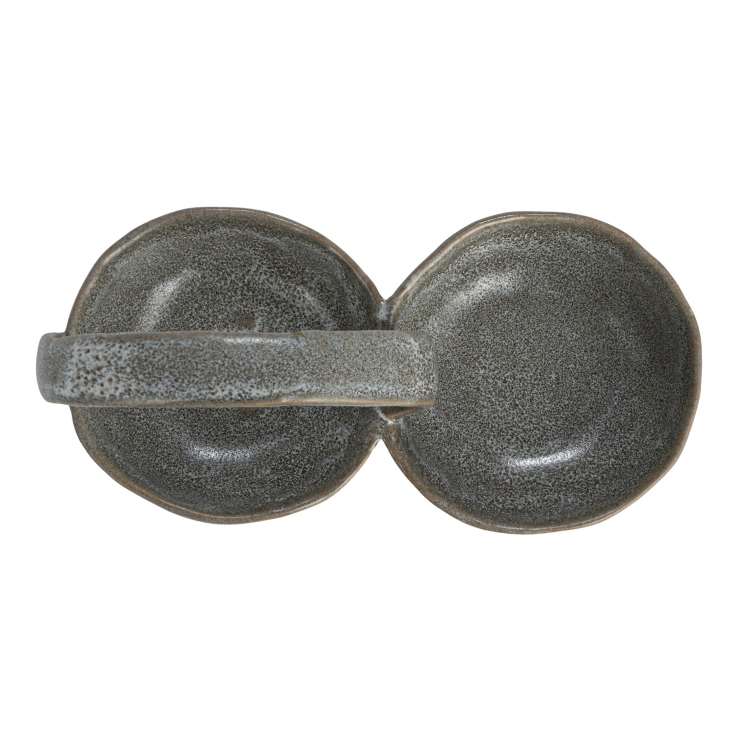 Catalog Name: 8-1/2"L x 4-1/4"W x 4"H Stoneware Double Bowl w/ Handle, Reactive Glaze, Grey (Each One Will Vary)