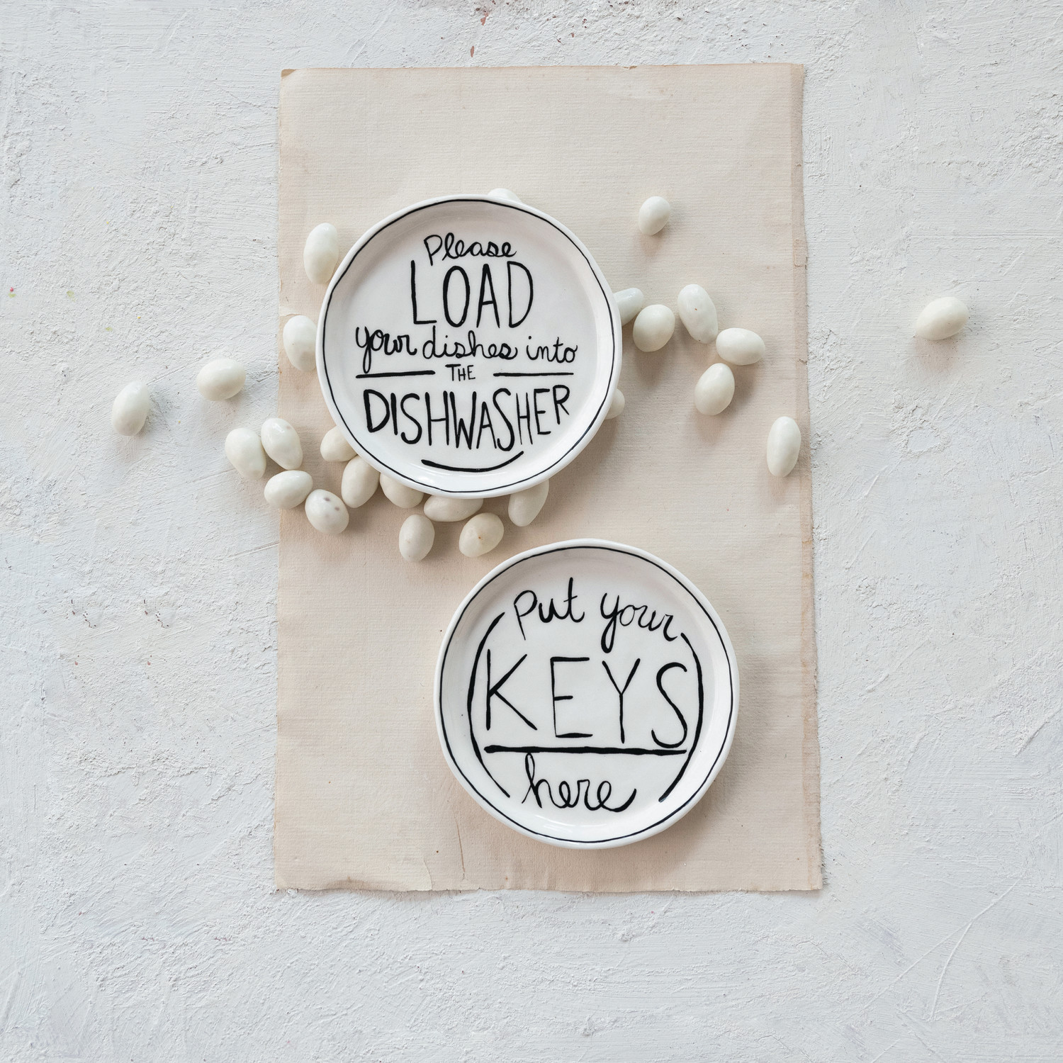 Catalog Name: 5" Round Stoneware Dish w/ Saying “Please Load Your Dishes…”, White & Black ©