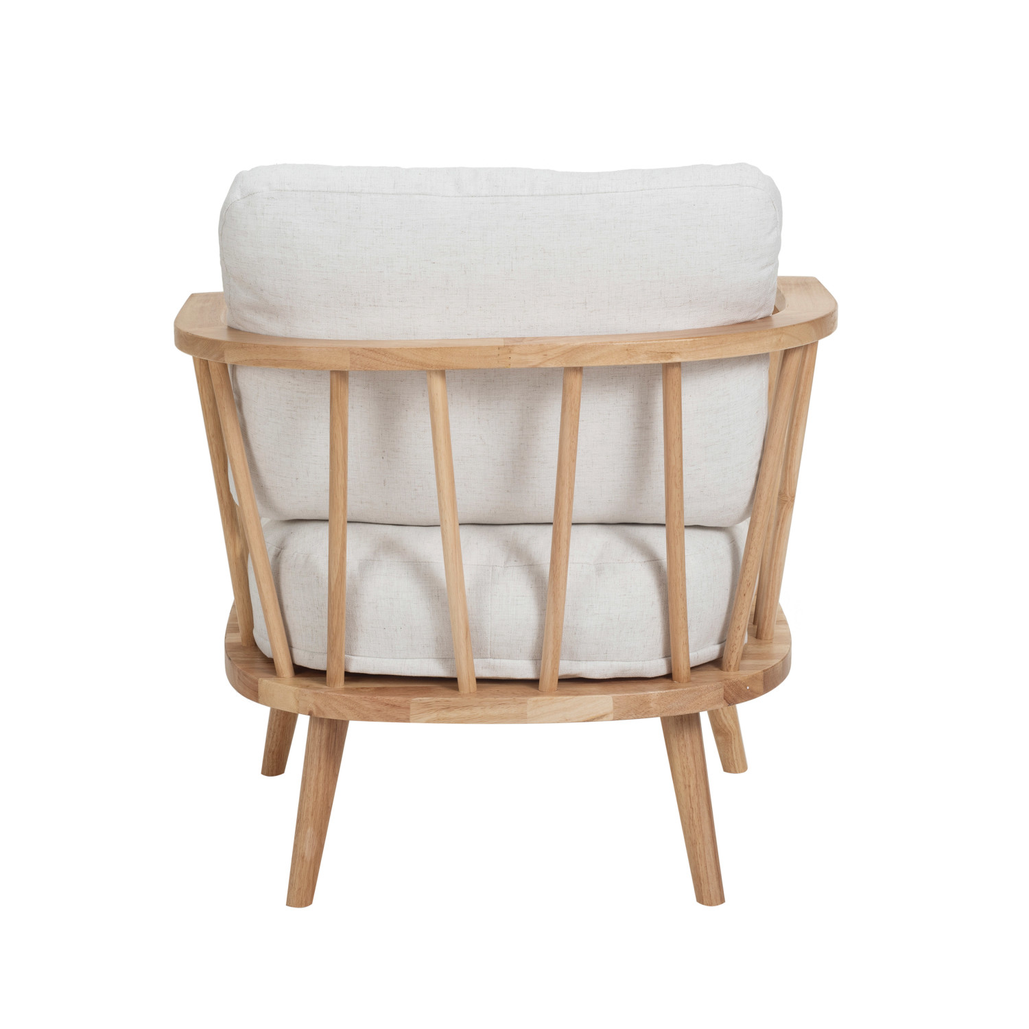 This comfortable and stylish chair features a rubberwood frame and two removable cushions in natural and beige color. The chair is made of high-quality rubberwood and cotton, which are natural and eco-friendly materials that offer durability and comfort. The rubberwood provides strength and stability, while the cotton provides softness and breathability. The cushions are tufted and have zipper closures for easy removal and cleaning. The natural and beige color is neutral and elegant, adding a touch of elegance and coziness to the chair. Use it as an accent chair, a reading chair, or a lounge chair, this chair will reflect light and create a relaxing feel. The chair comes partially assembled and ready to use. It can be placed in the living room, bedroom, or any other cozy corner of the home. This chair is a beautiful piece of art that will enhance the home with its beauty and functionality.
