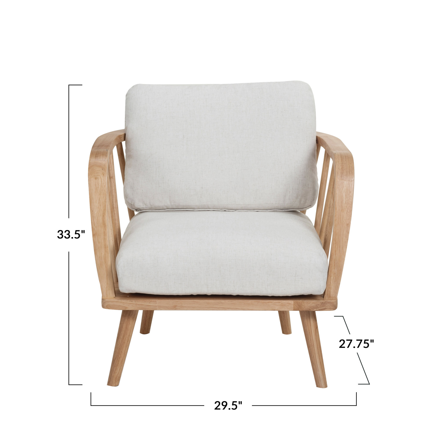 Catalog Name: 29-1/2"W x 27-3/4"D x 33-1/2"H Rubberwood Chair w/ (2) Cushions & Removable Covers, Natural & Beige, KD, Truck Ship