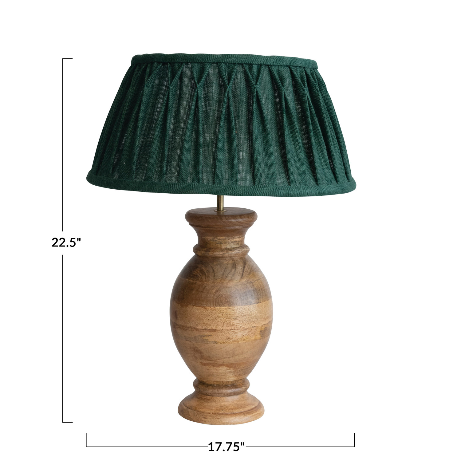 Catalog Name: 17-3/4" Round x 22-1/2"H Mango Wood Table Lamp w/ Pintucked Burlap & Cotton Shade & Inline Switch, Natural & Forest Green