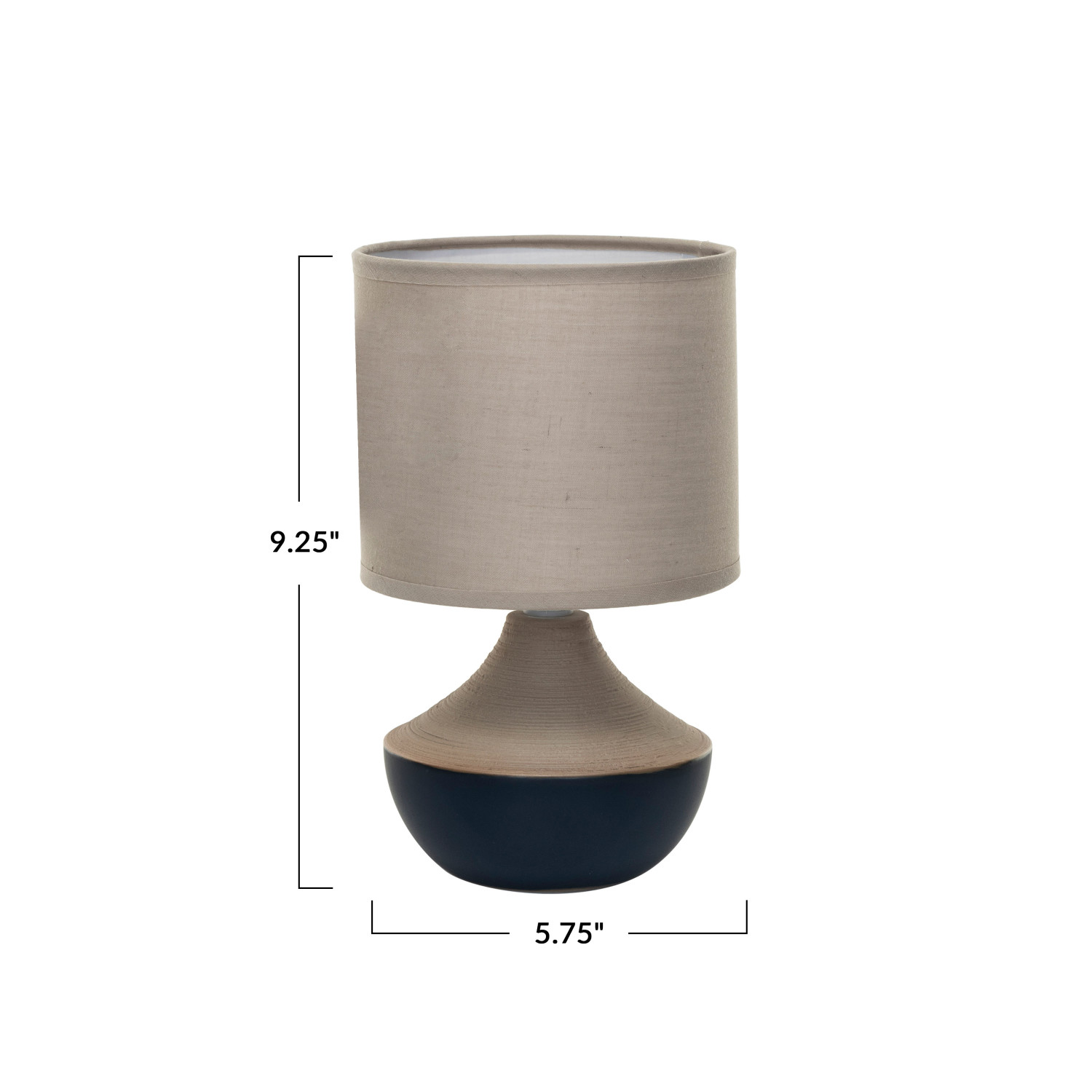 Catalog Name: 5-3/4" Round x 9-1/4"H Stoneware Table Lamp w/ Linen Shade, Navy Color & Natural