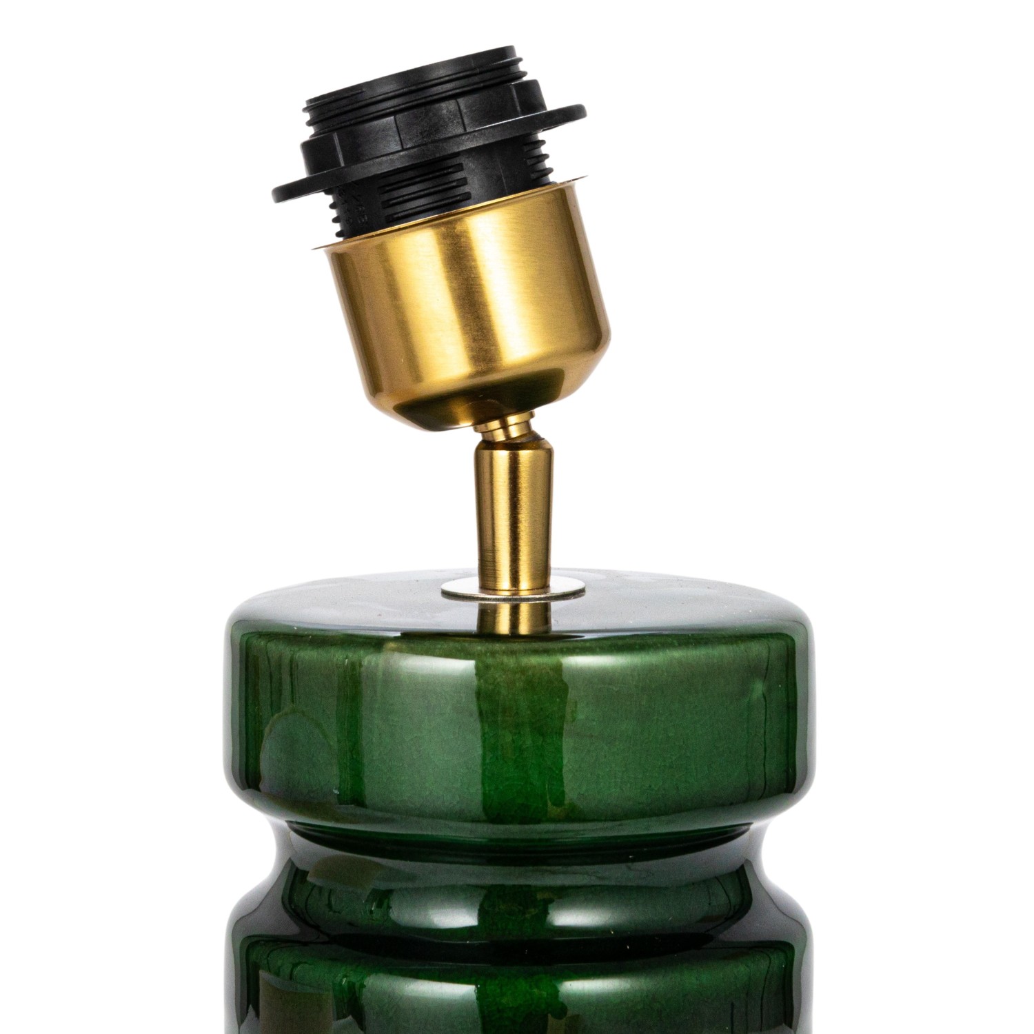 Catalog Name: 11-1/2" Round x 23"H Ceramic Table Lamp w/ Linen Shade & Inline Switch, Green & Natural