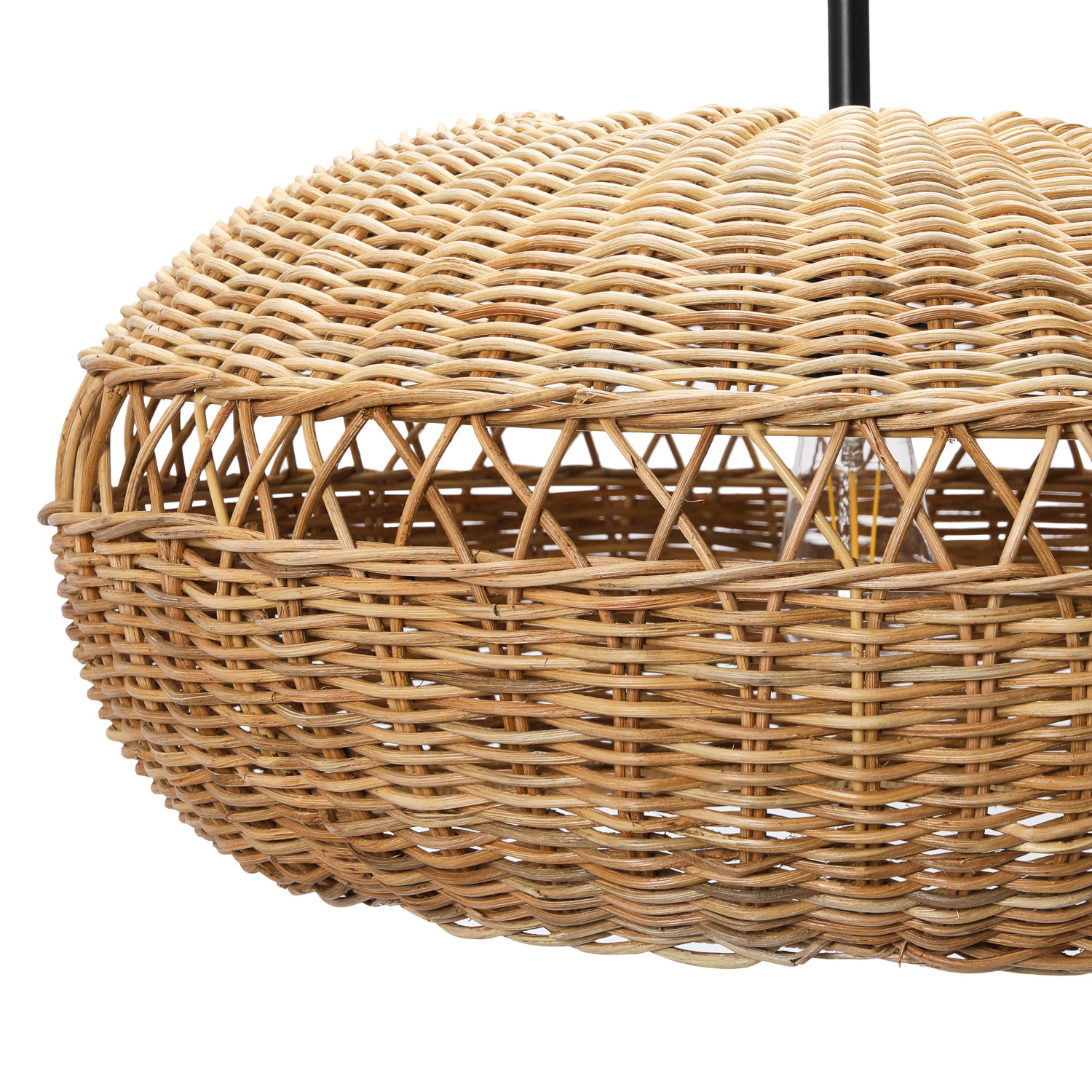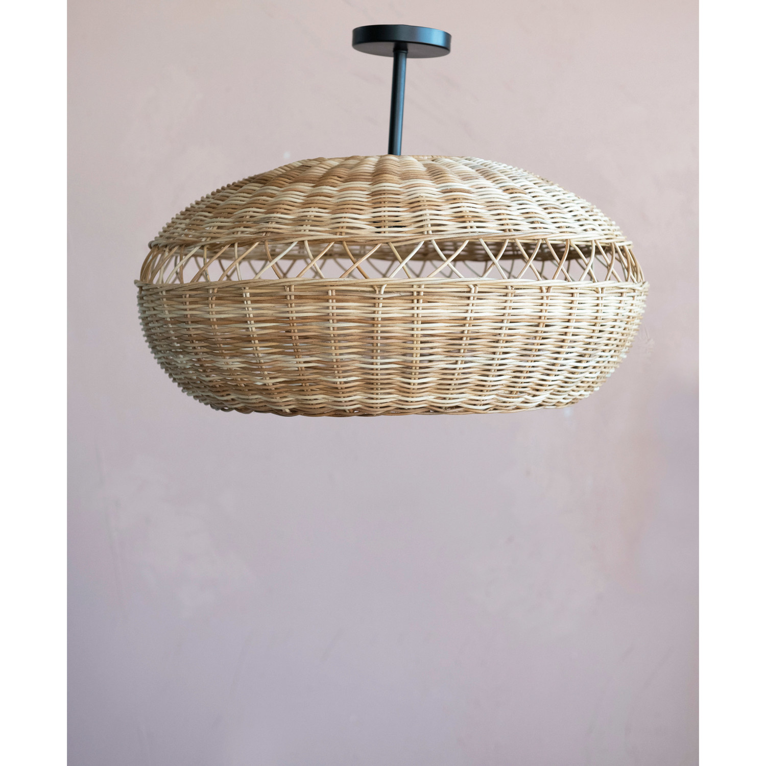 Catalog Name: 24-1/4" Round x 17-1/4"H Hand-Woven Rattan Semi-Flush Pendant Lamp, 2' Cord (60 Watt Bulb Maximum, Hardwire Only)