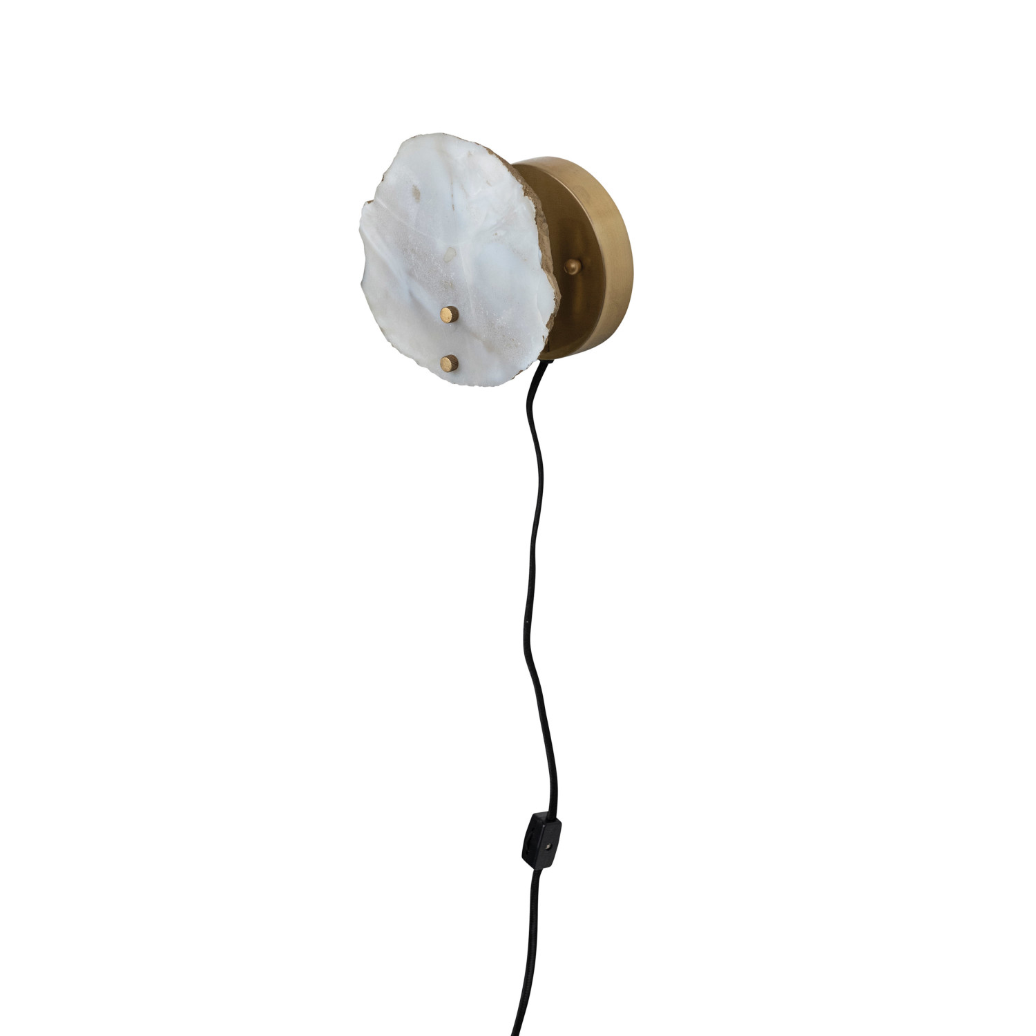 Catalog Name: 6"L x 4"W x 6-1/2"H Agate & Metal Wall Lamp w/ Inline Switch, Natural & Brass Finish (Each One Will Vary)