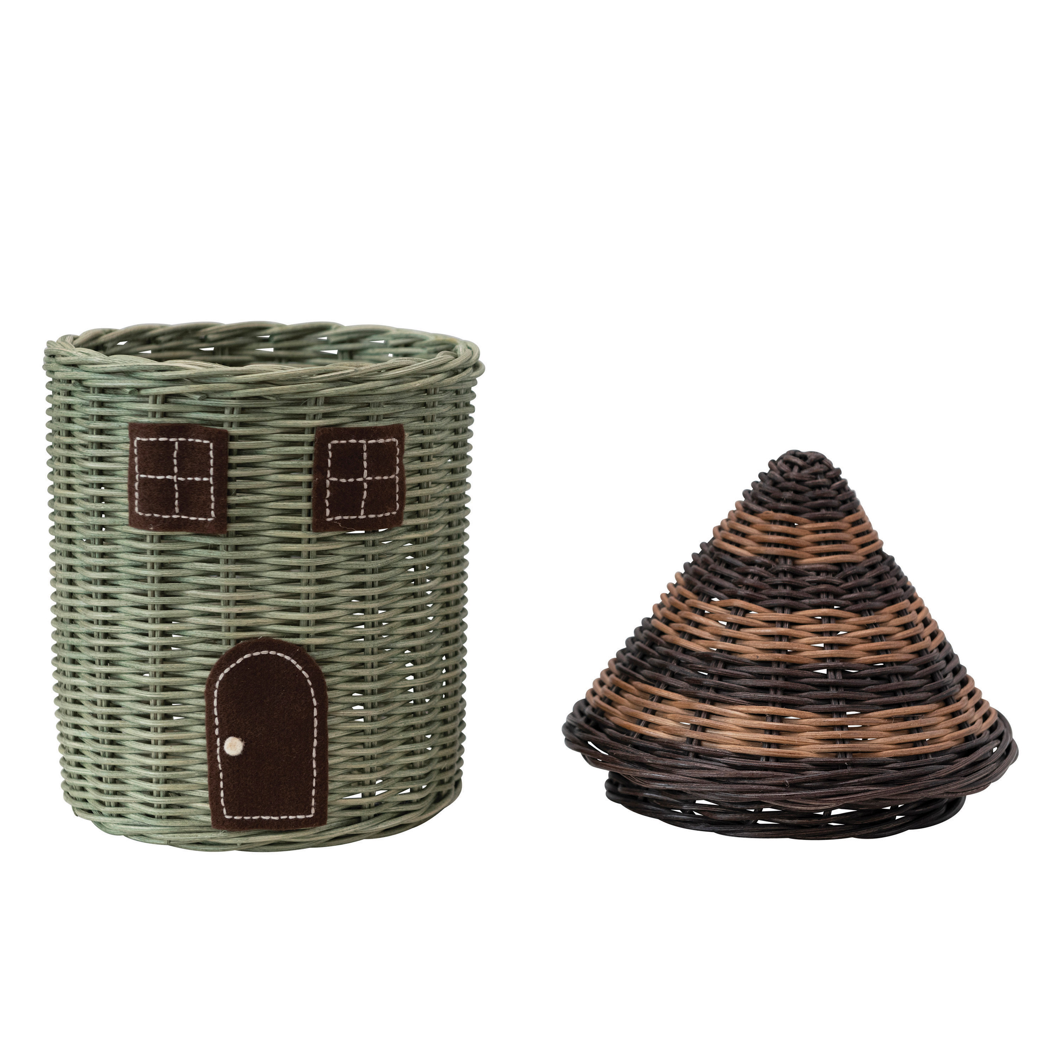 Catalog Name: 7-3/4" Round x 12-1/4"H Hand-Woven Rattan House Shaped Basket w/ Lid, Multi Color
