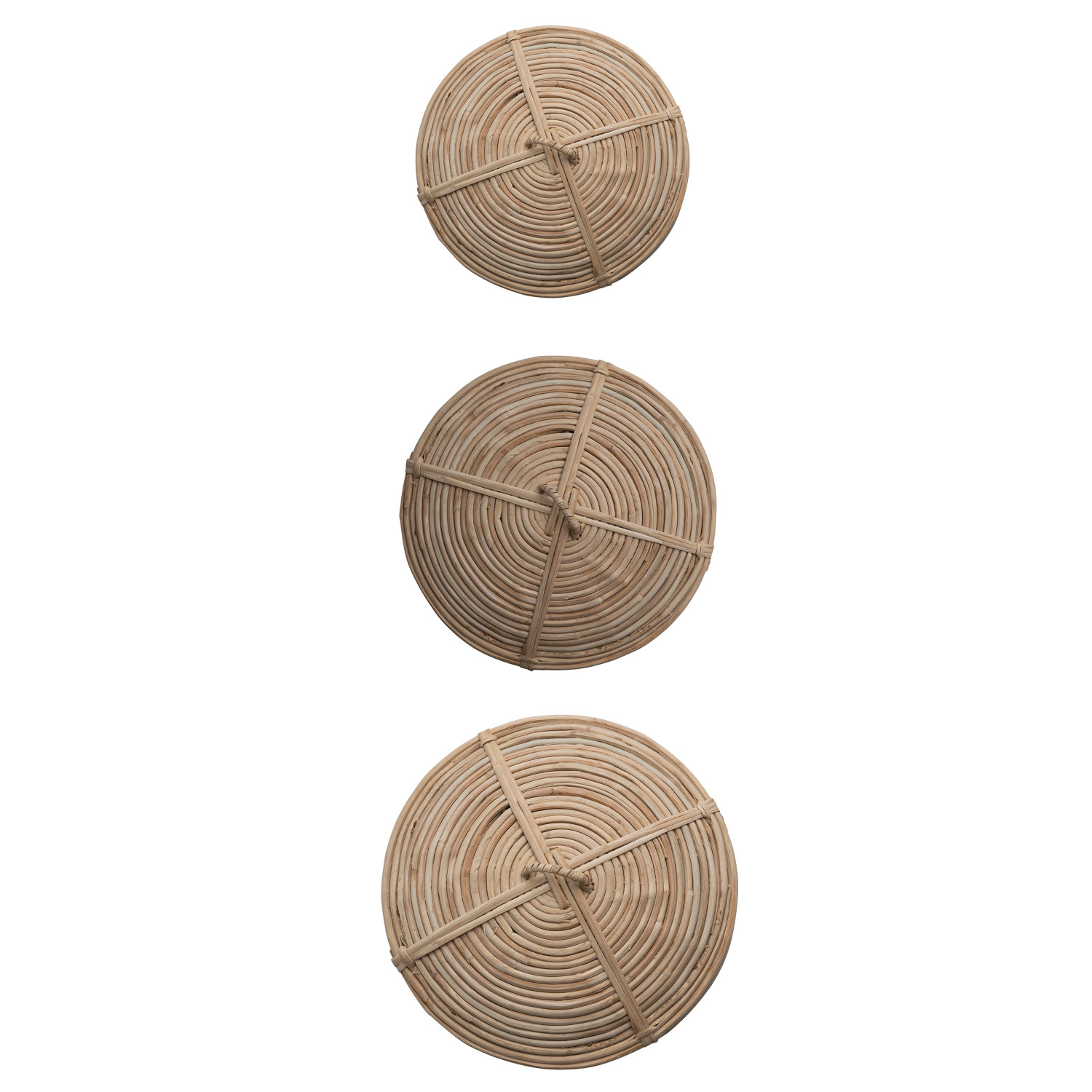Catalog Name: 13-3/4" Round x 15"H, 11-3/4" Round x 12"H & 9-3/4" Round x 10"H Hand-Woven Rattan Baskets w/ Lids, Natural, Set of 3
