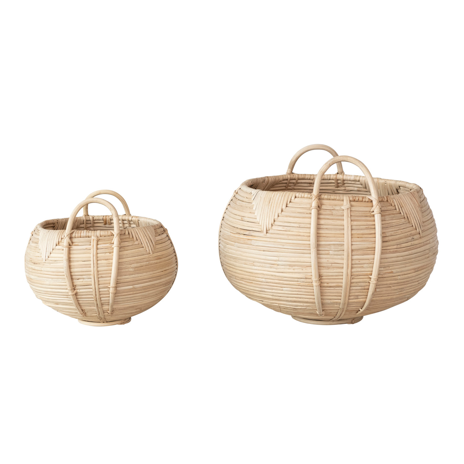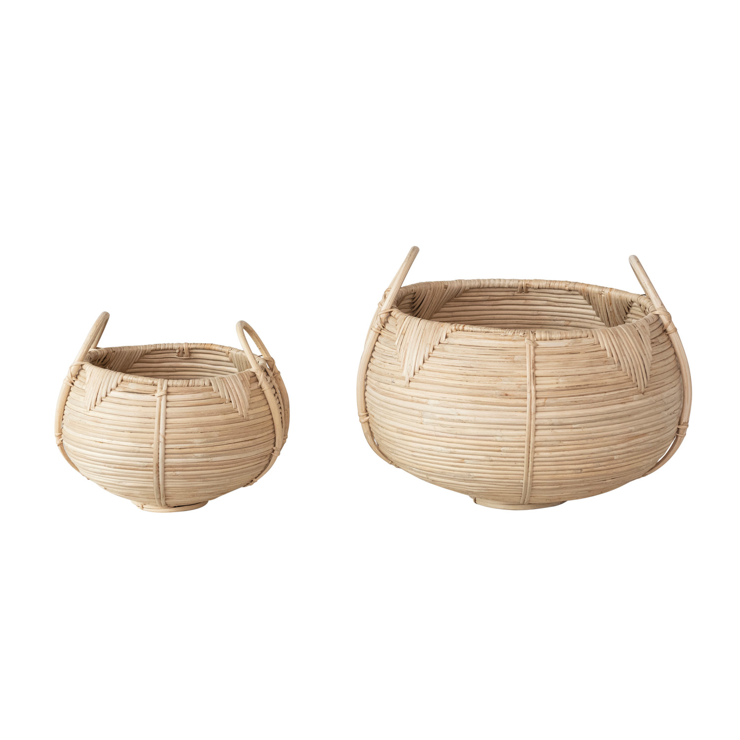 Decorative Hand-Woven Rattan Baskets w/ Handles, Natural, Set of 2