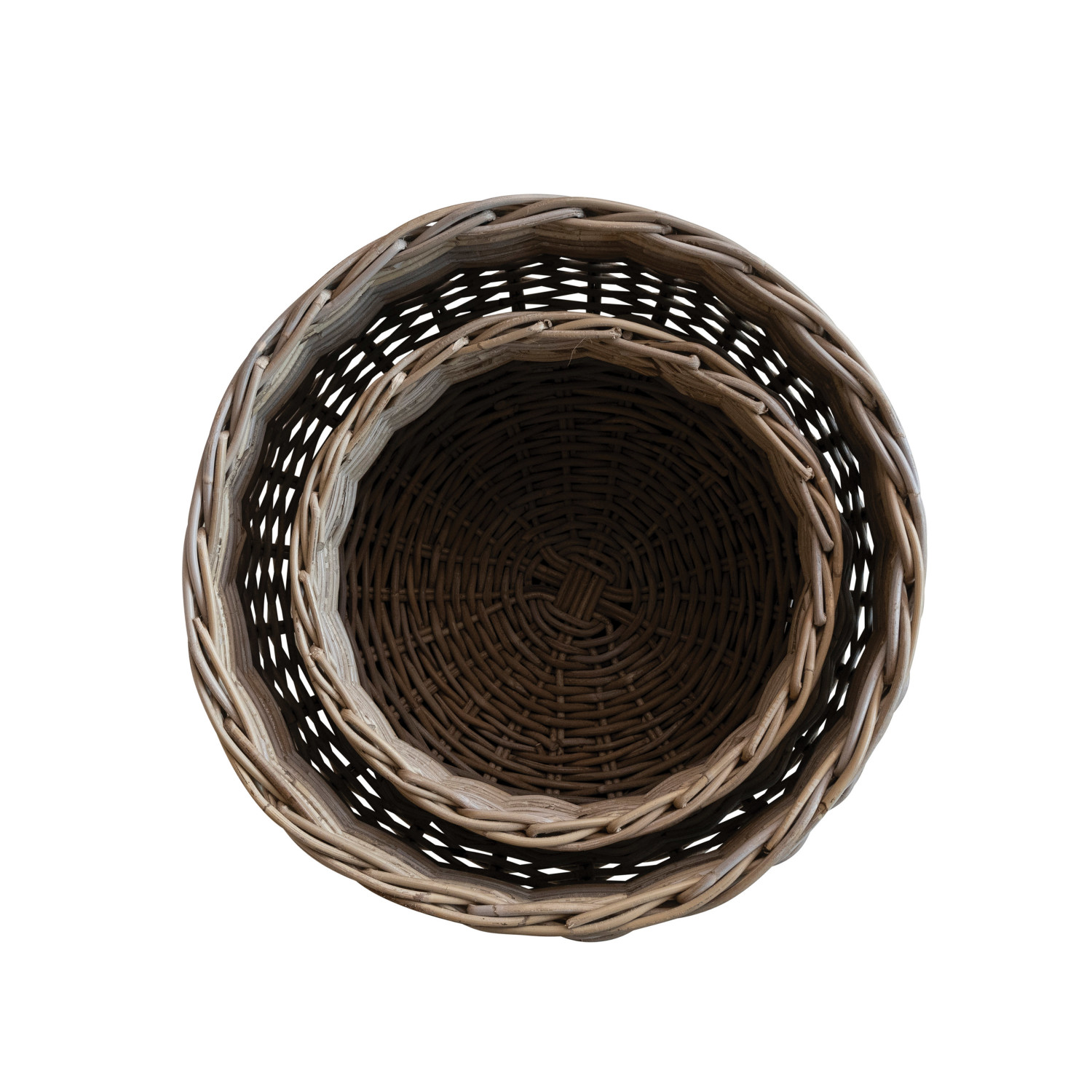 Catalog Name: 24-3/4" Round x 15-3/4"H & 19" Round x 13"H Hand-Woven Rattan Planters/Baskets, Grey, Set of 2 (Holds 18" & 16" Pots)
