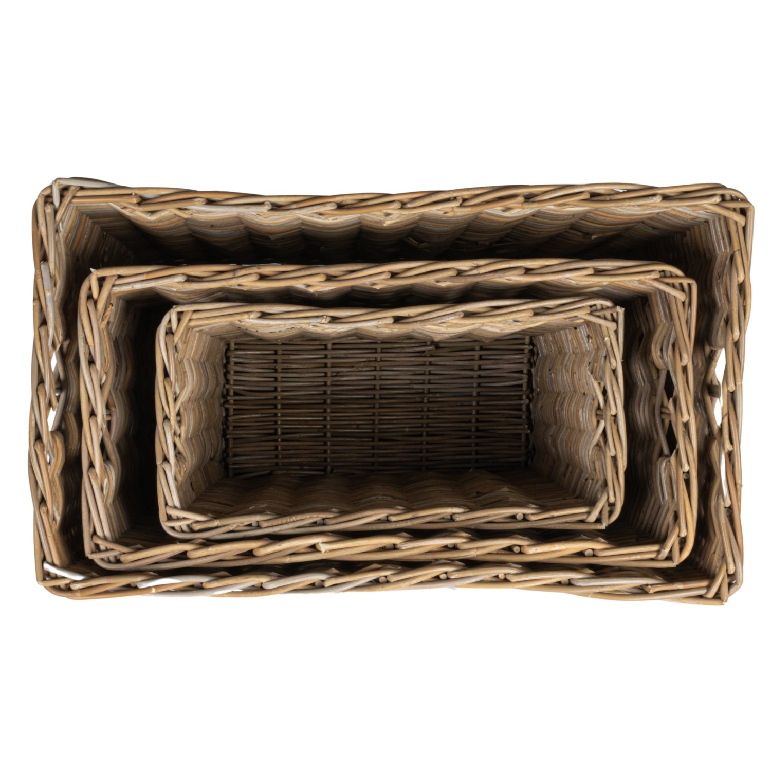 Catalog Name: 28-3/4"L x 17"W x 21-3/4"H, 25-1/4"L x 13-1/2"W x 19-3/4"H & 19-3/4"L x 9-3/4"W x 17-3/4"H Rectangular Woven Wicker Rattan Baskets w/ Handles, Natural, Set of 3
