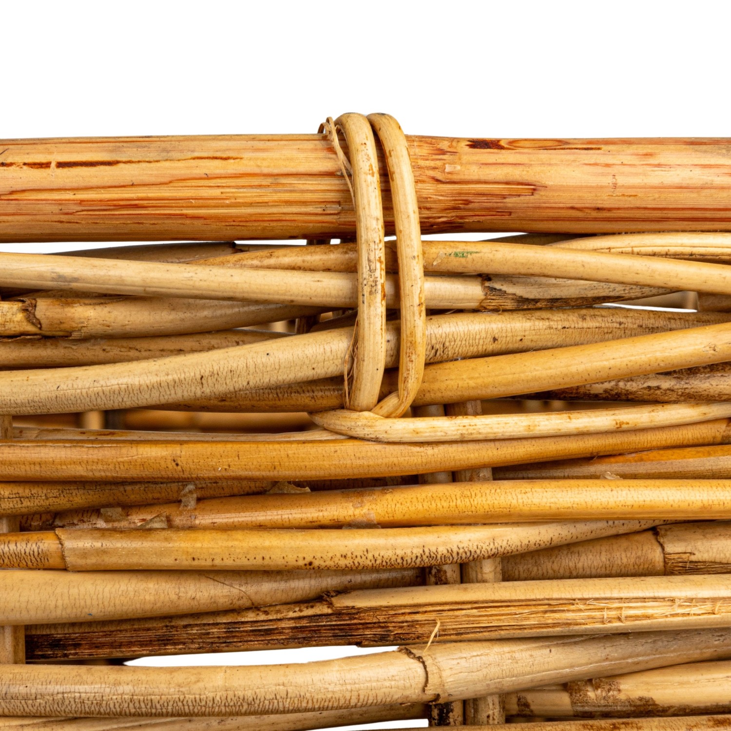 This set of two Hand-Woven Rattan Baskets with Handles is a perfect combination of beauty and utility. The larger basket measures 15.5 inches round and 14.75 inches tall, while the smaller one is 12 inches round and 13 inches tall. Their natural rattan construction not only provides durability and a gentle, earthy aesthetic but also supports sustainable living. With their oval shape and sturdy handles, these baskets are ideal for a variety of uses, from organizing blankets and pillows in a living room to holding fresh towels in a guest bathroom. Whether one's aiming for a boho-chic vibe, a coastal look, or an eclectic touch, these baskets will serve as both functional items and decorative pieces in the home.