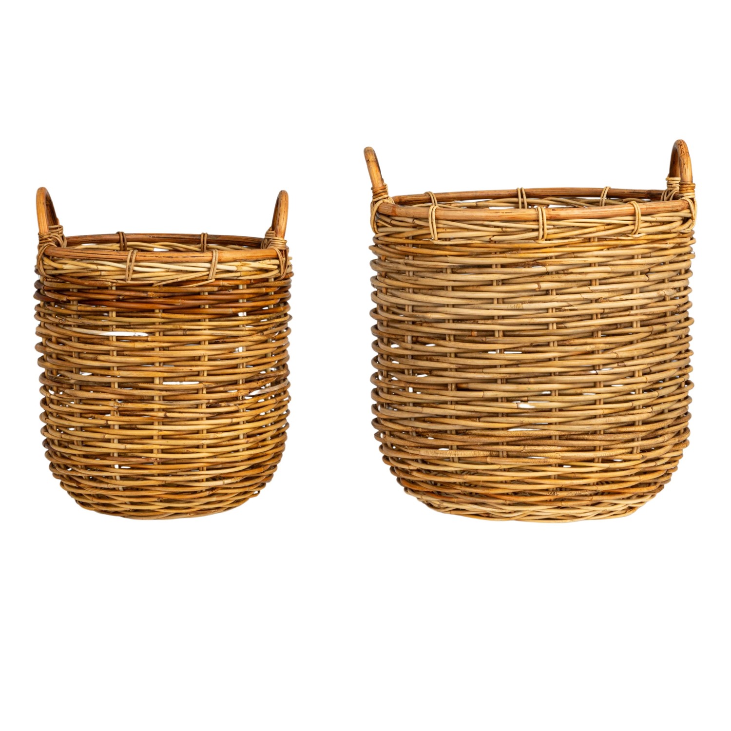 Hand-Woven Rattan Baskets w/ Handles, Natural, Set of 2