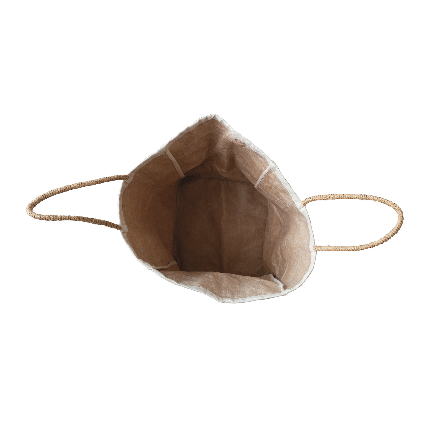 Catalog Name: 14" Square x 20"H & 12" Square x 16"H Cotton Canvas Storage Bags w/ Braided Raffia Handles & Interior Coating, Natural, Set of 2
