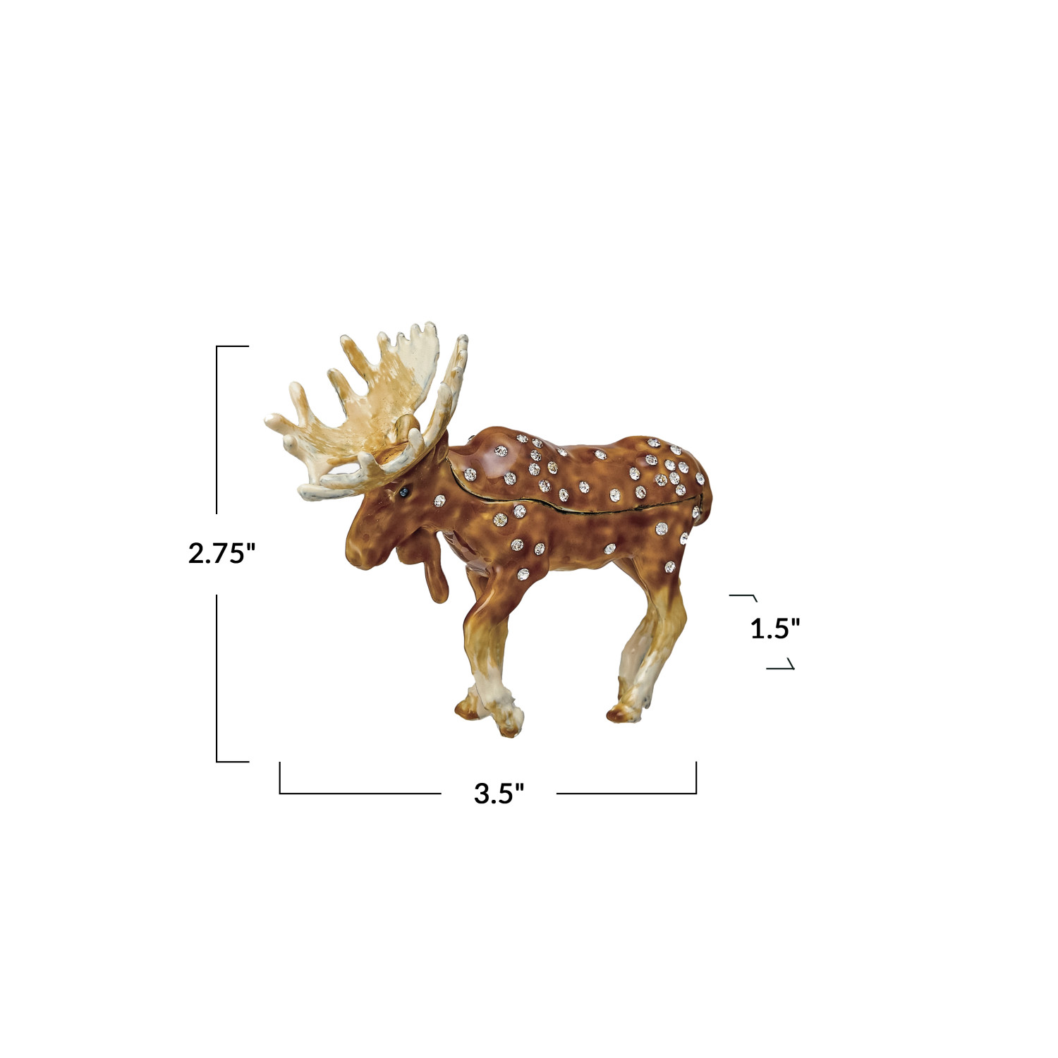 Catalog Name: 3-1/2"L x 1-1/2"W x 2-3/4"H Enameled Metal Moose Shaped Trinket Box w/ Jewels, Brown & Tan Color