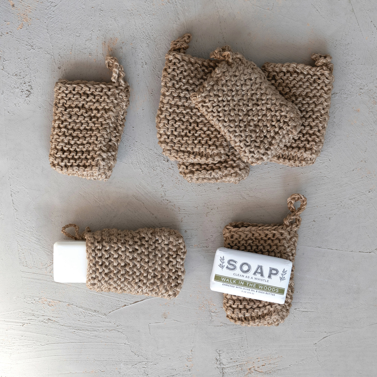 Catalog Name: 5"L x 3-1/2"W Jute Crocheted Body Scrubber/Soap Holder