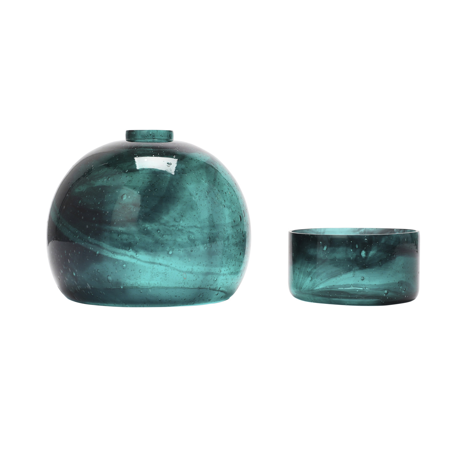 Catalog Name: 6" Round x 5"H Glass Tealight Holder/Vase w/ Cloche, Teal Color, Set of 2