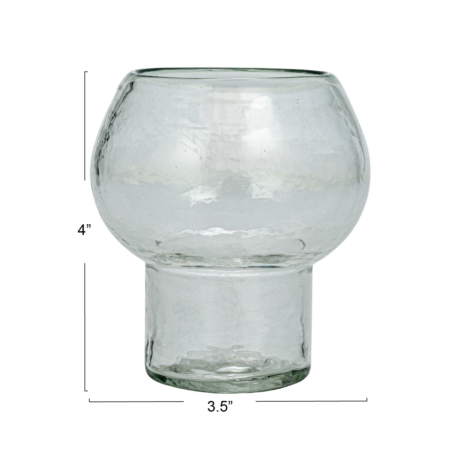 Catalog Name: 3-1/2" Round x 4"H Recycled Glass Footed Votive Holder