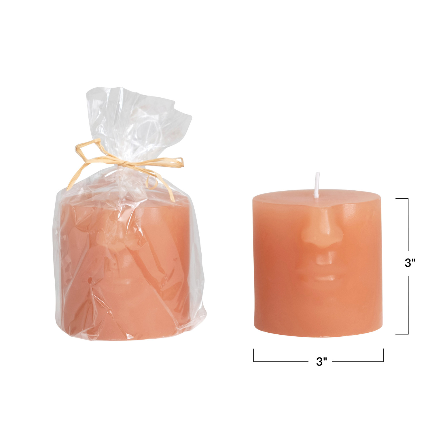 Catalog Name: 3" Round x 3"H Unscented Face Pillar Candle, Nude Color (Est. Burn Time 30 Hours)
