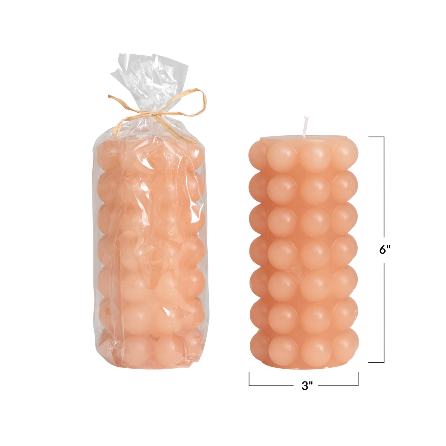 Catalog Name: 3" Round x 6"H Unscented Hobnail Pillar Candle, Nude Color (Approximate Burn Time 50 Hours)