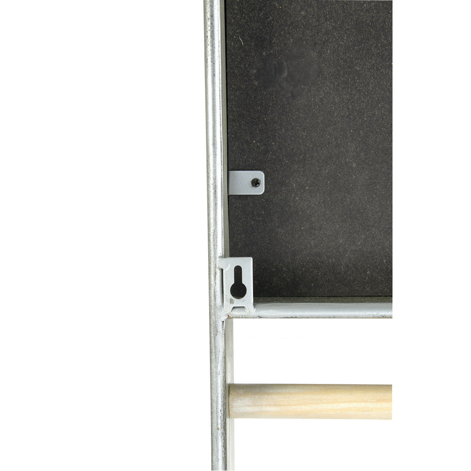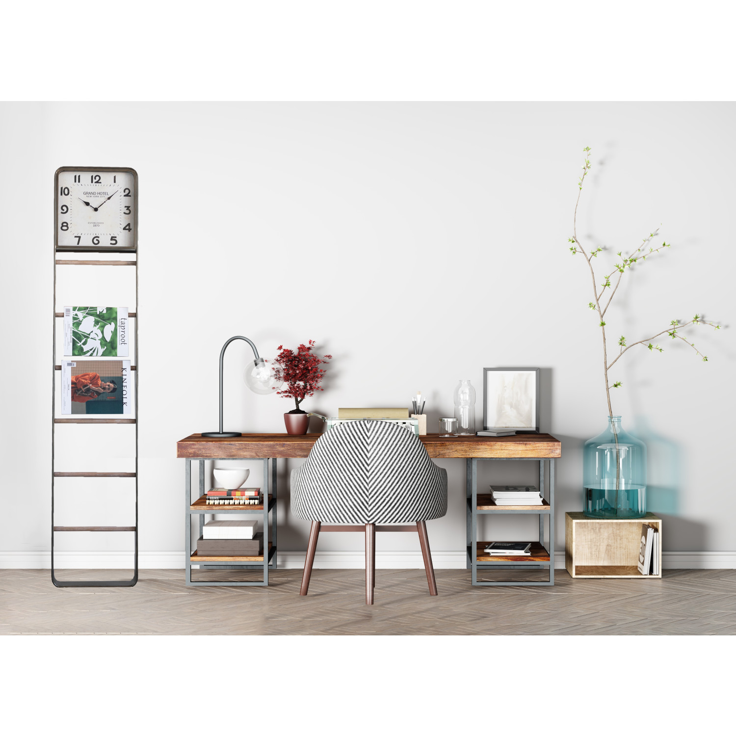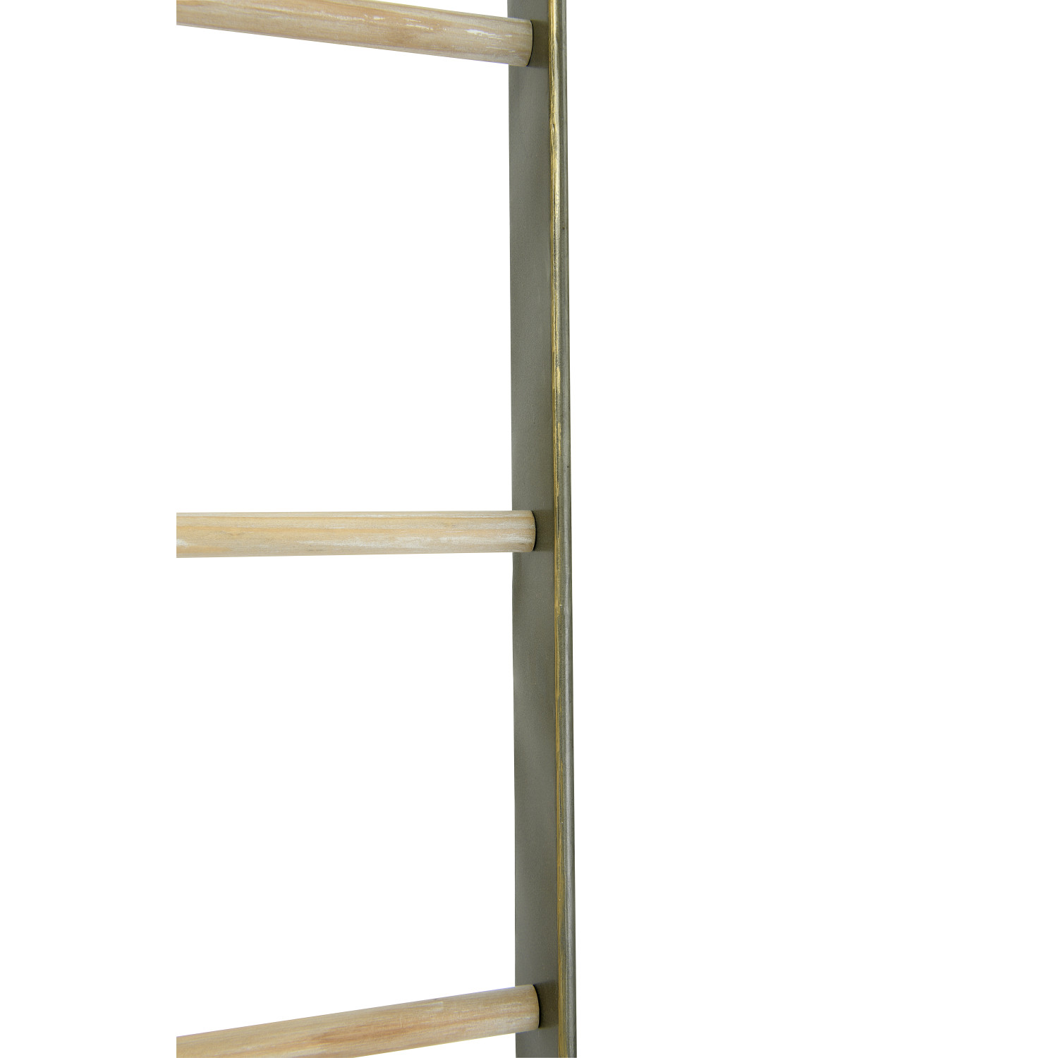 With a tall vertical design, this decorative ladder and clock can be displayed against a wall in any room of the house. Simply lean it against a wall that needs a clock and fill the rods with decorative throws, scarves or towels. In an office setting, hang a selection of magazines with half of the pages hanging on either side of the rods.