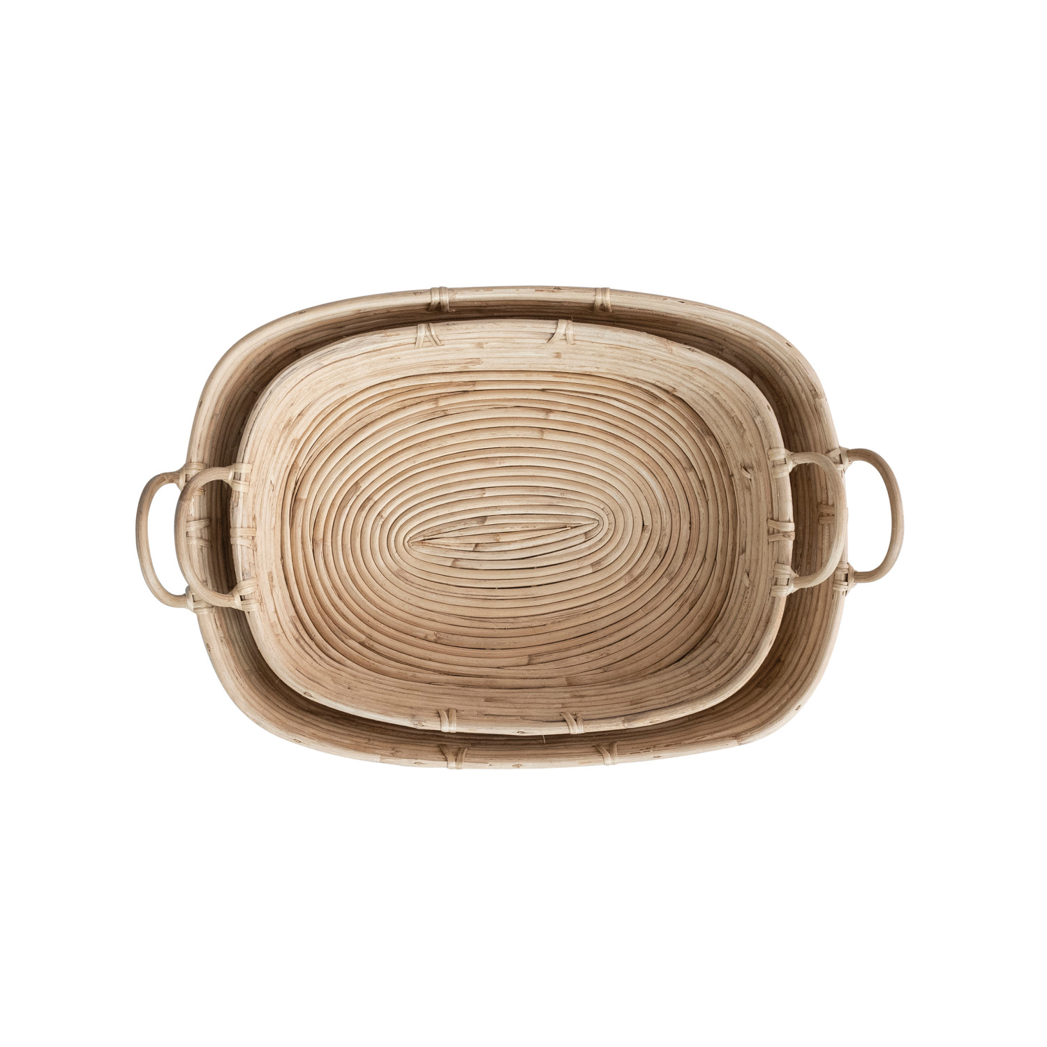 Catalog Name: 22"L x 15"W x 3-1/2"H & 18-1/4"L x 12-3/4"W x 3-1/2"H Decorative Hand-Woven Rattan Trays w/ Handles, Natural, Set of 2
