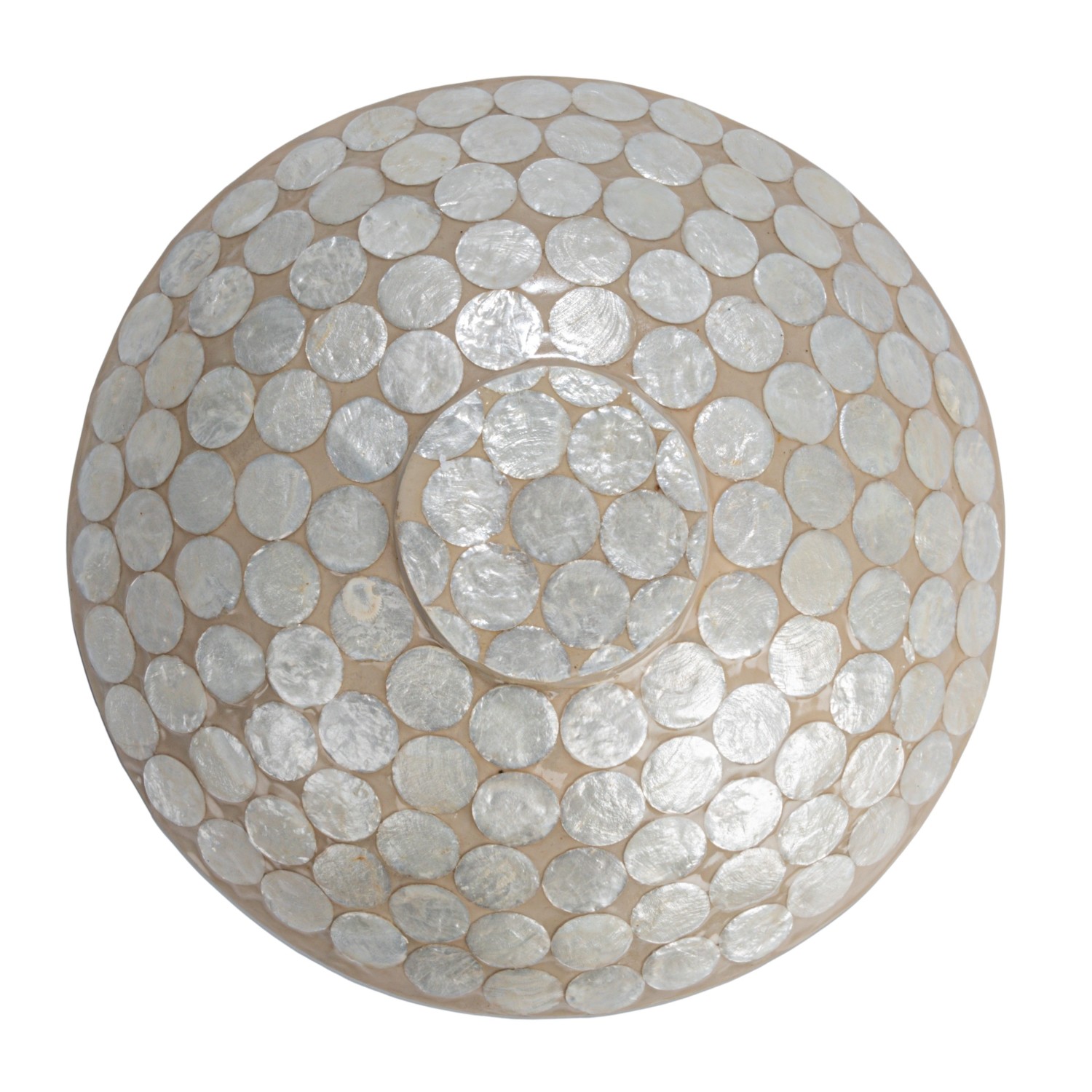 Catalog Name: 14-1/2" Round x 3-1/4"H Decorative Resin & Capiz Bowl, White & Natural