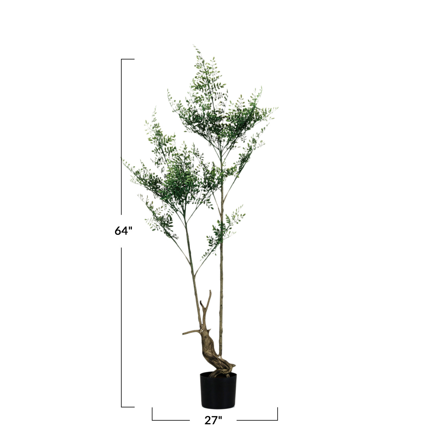 Add beauty and freshness to any space with this faux rue plant in a plastic pot. This lovely accessory features a realistic and low-maintenance faux botanical that has a green rue plant with delicate and feathery leaves. The rue plant is planted in a black plastic pot that is simple and sturdy and can be placed on the floor or on a stand. The plastic material is durable and lightweight and has a lifelike appearance and texture that mimics the real plant. The faux botanical only requires spot cleaning with a damp cloth and does not need any watering or pruning. It has a round shape that measures 27 inches in diameter and 64 inches in height, making it a sizable piece for any space. This faux rue plant in a plastic pot is a charming accessory that can enhance any farmhouse, botanical, garden, or cottagecore style home. It can be used to add beauty and freshness to any space with its lovely design and quality material.