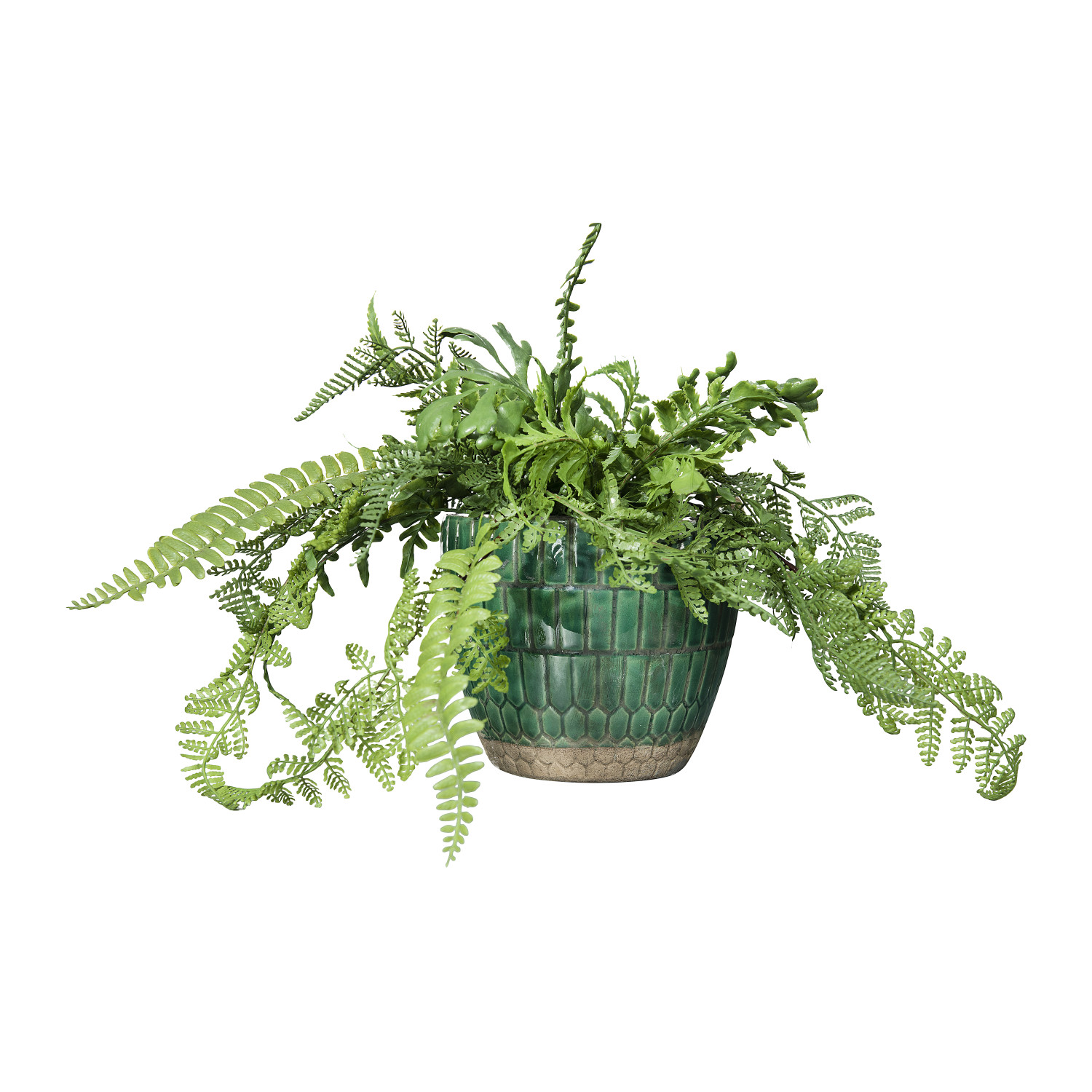 Accent the room decor with this green terracotta planter. The heavily distressed tile pattern will complement colorful flowers or luscious greenery. Simply fill with a three inch potted plant and display on a pedestal or accent table.