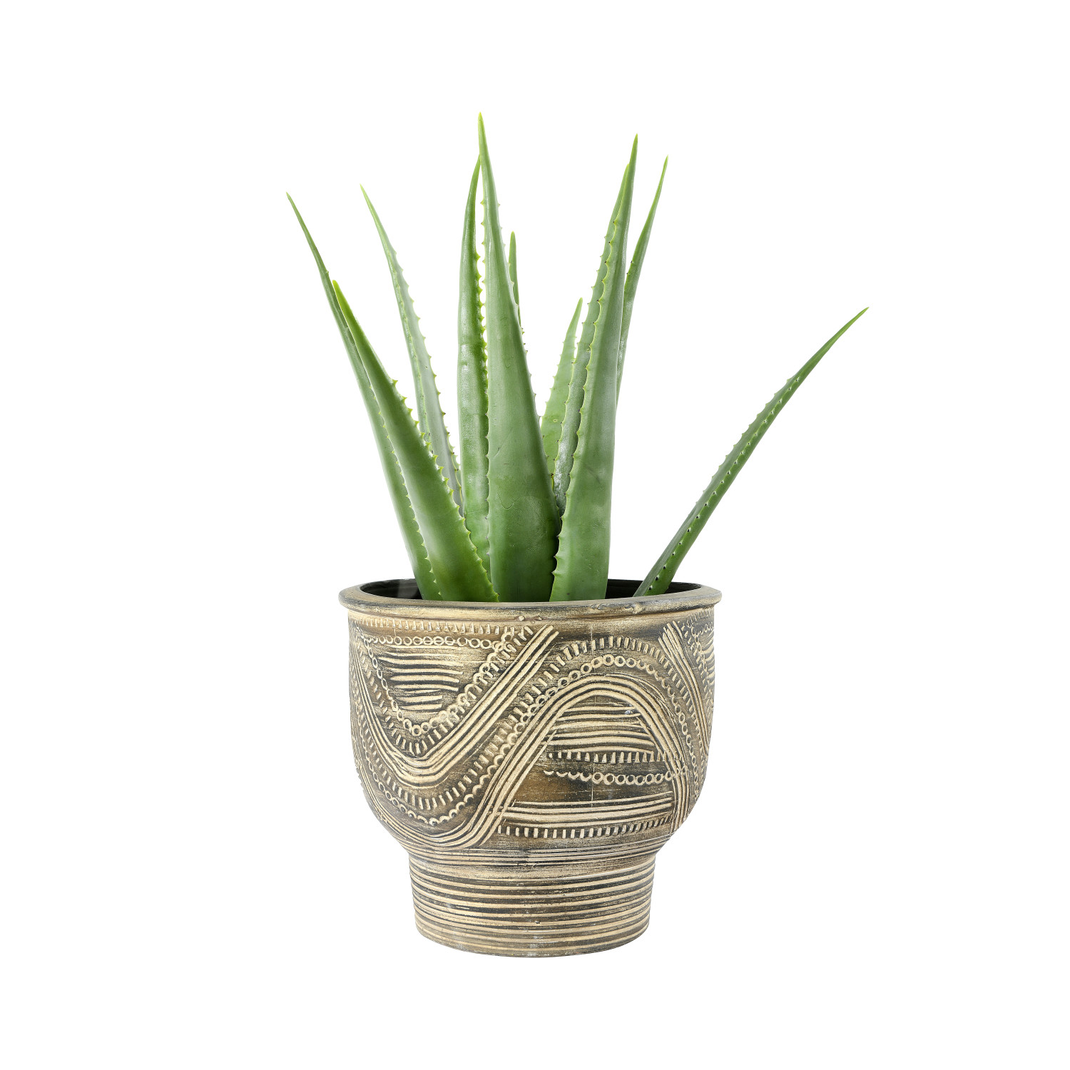 This debossed terracotta planter with distressed finish is an easy way to add beauty to your room decor. Fill it with a potted plant of colorful flowers or lush greenery. It will bring a fresh look to a tabletop, floor or porch that will be enjoyed by all.