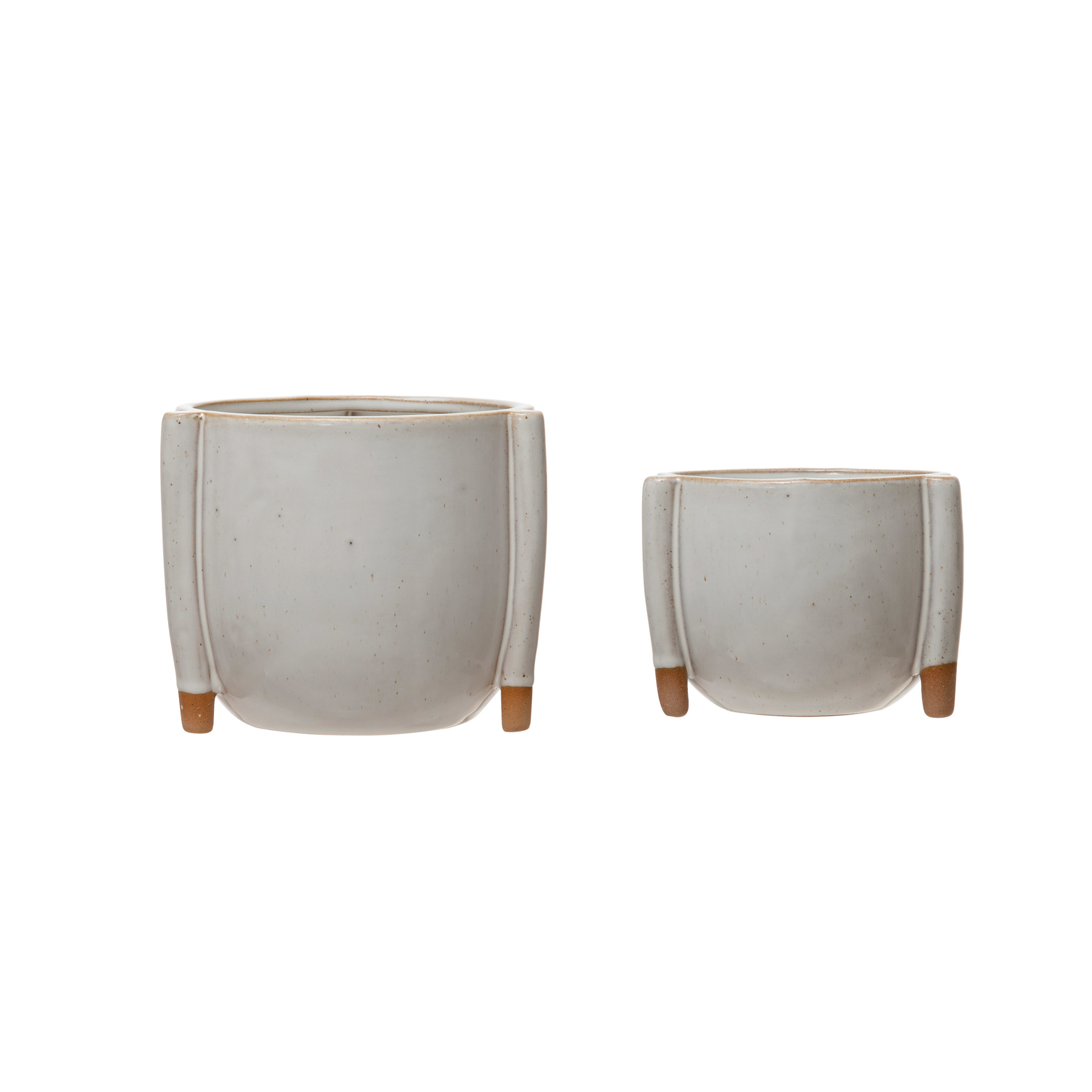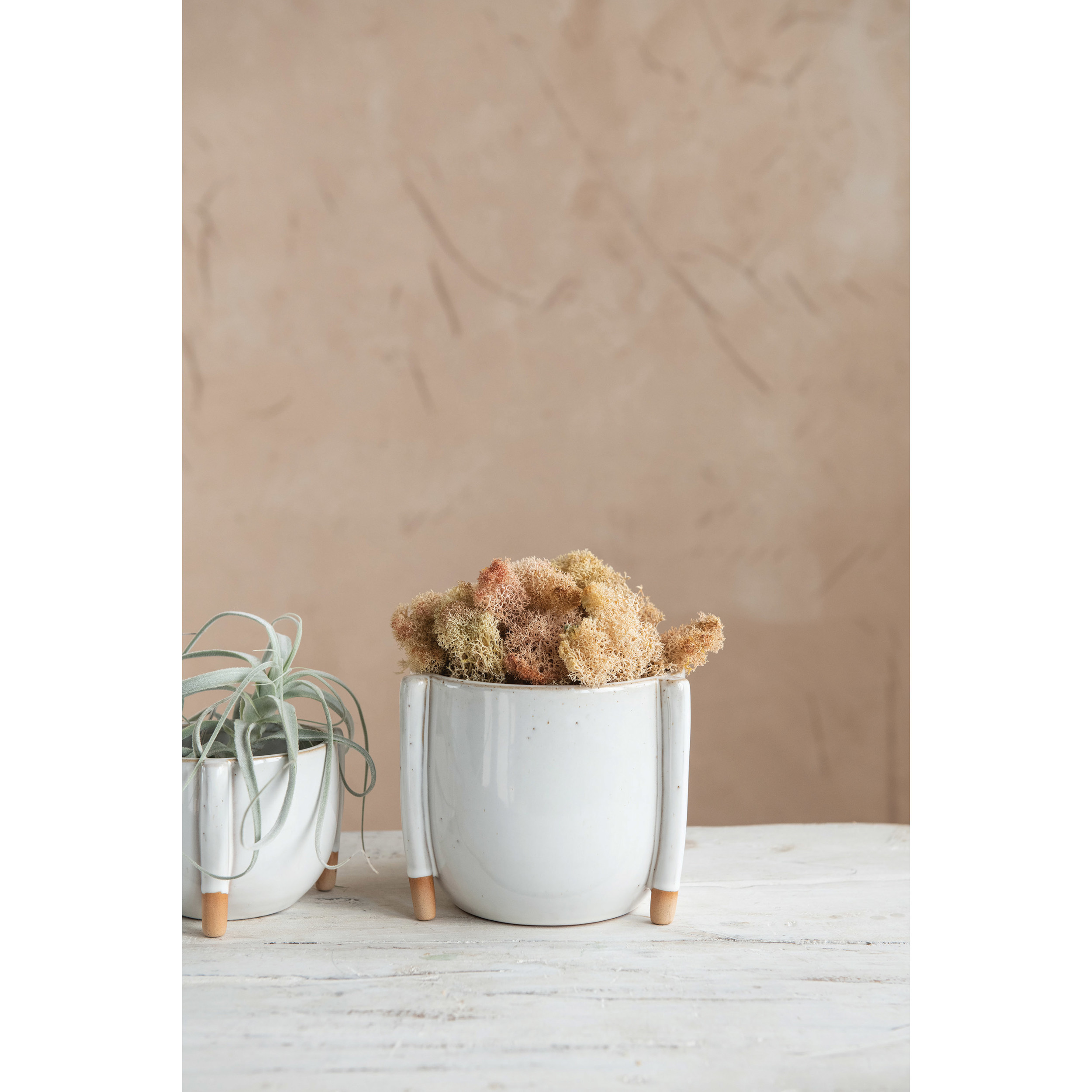 Catalog Name: 5-1/2" Round x 4-1/2"H Stoneware Footed Planter, Reactive Glaze, White (Holds 5" Pot) (Each One Will Vary)