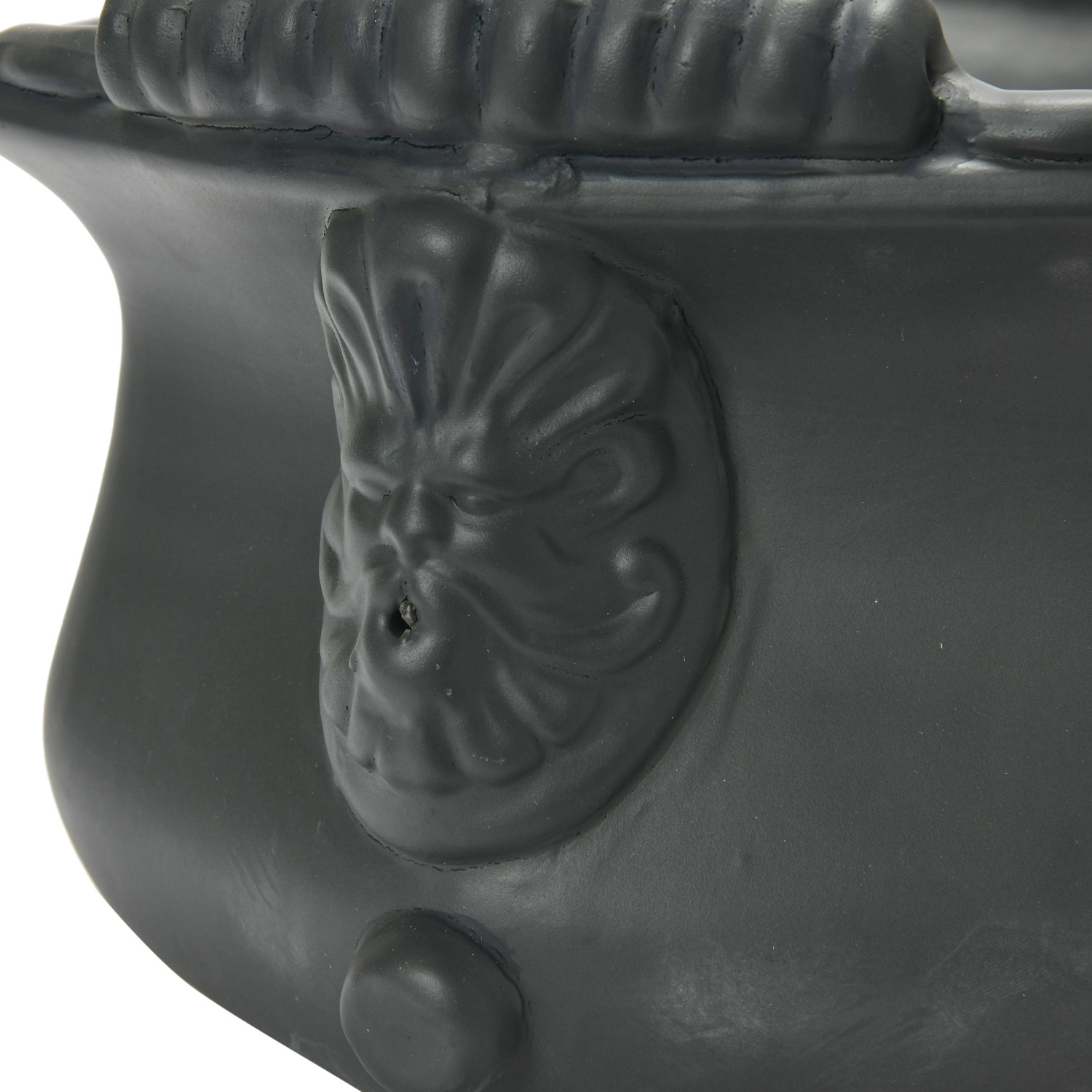 This elegant, vintage-inspired planter showcases an intricately carved terracotta construction in a matte finish. Terracotta planter in black finish. Add a touch of natural beauty to any covered patio or living space with this artistically crafted planter. Made from 100% terracotta.