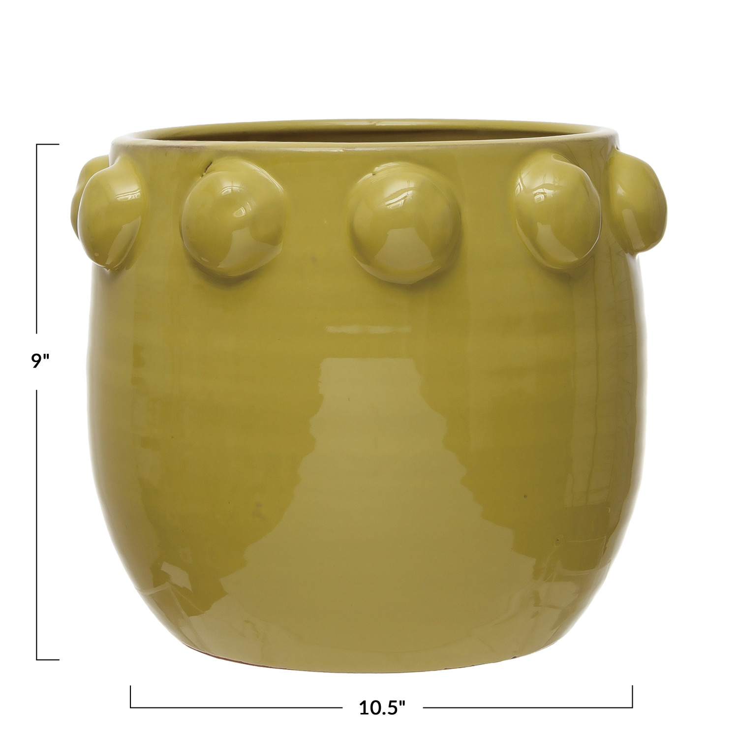 Catalog Name: 10-1/2" Round x 9"H Terra-cotta Planter w/ Raised Dots, Chartreuse, Truck Ship (Holds 7" Pot)