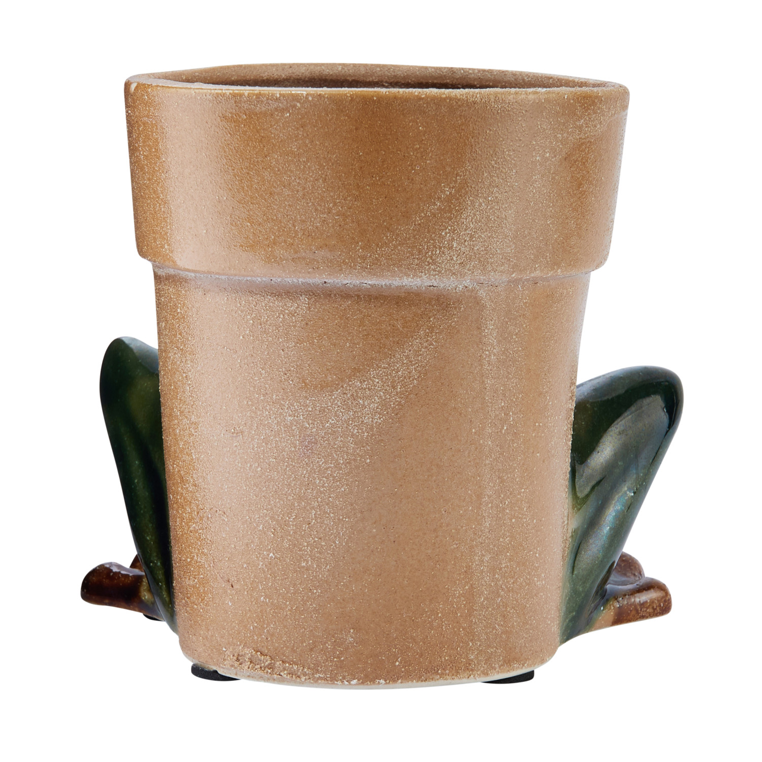 This green, white, and brown stoneware frog planter is a fun and quirky way to display plants. The planter features a stoneware frog with a round body and a smiling face that brightens up any space. The planter does not have any drainage holes, so it is suitable for artificial plants or succulents that do not require much water. The planter is made of sturdy and high-quality stoneware with a reactive glaze finish that creates a unique and variegated look. The vase measures 5.25 inches in diameter, and 5 inches tall and can hold a 4-inch pot. This planter is great for adding some color and character to any garden, patio, or porch. A fun and quirky planter that features a stoneware frog with a round body and a smiling face. Great for adding some color and character to the garden, patio, or porch. The planter does not have any drainage holes, so it is suitable for artificial plants or succulents that do not require much water. Made of stoneware.