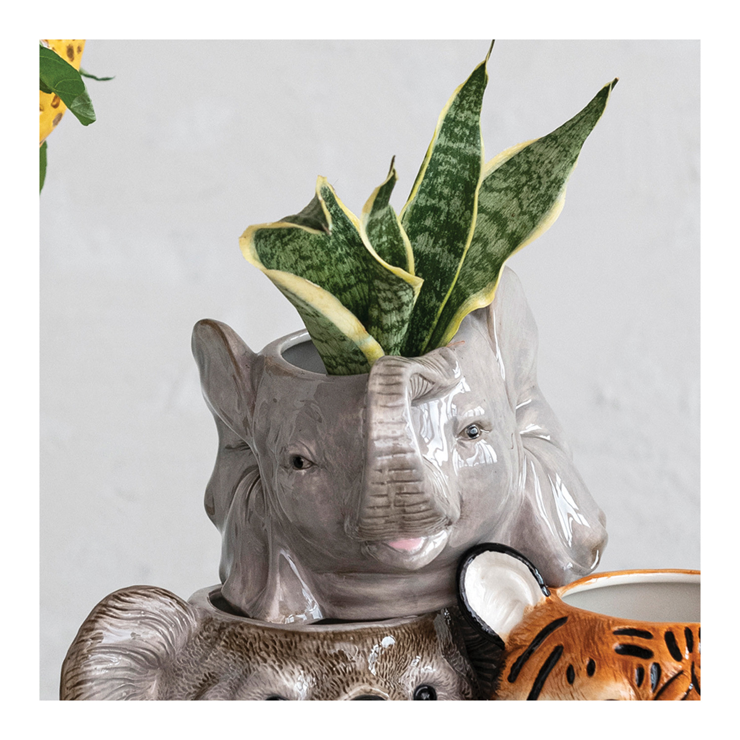 These flower pots, planters, and pot holders are essential products for any plant lover who wants to decorate their home or office with greenery. These products come in a variety of shapes and sizes, such as round, square, rectangle, oval, or semicircle. They also come in different materials and finishes, such as metal, wood, ceramic, rattan, or jute. Whether looking for a floor planter, a wall-mounted potholder, a hanging basket, or a table pot, there is a product to suit any space and style. Check them today and find the best flower pots, planters, and pot holders for any space. Add a touch of whimsy to any plant collection with the charming Round Ceramic Elephant Head Planter featuring a detailed elephant face design. Perfect choice for those who love animal-inspired decor or want to incorporate a bohemian or safari theme into their space. Designed to hold a 6-inch pot, display the plants with style and personality using this ceramic elephant head planter, creating a focal point in any room. Made of dolomite.