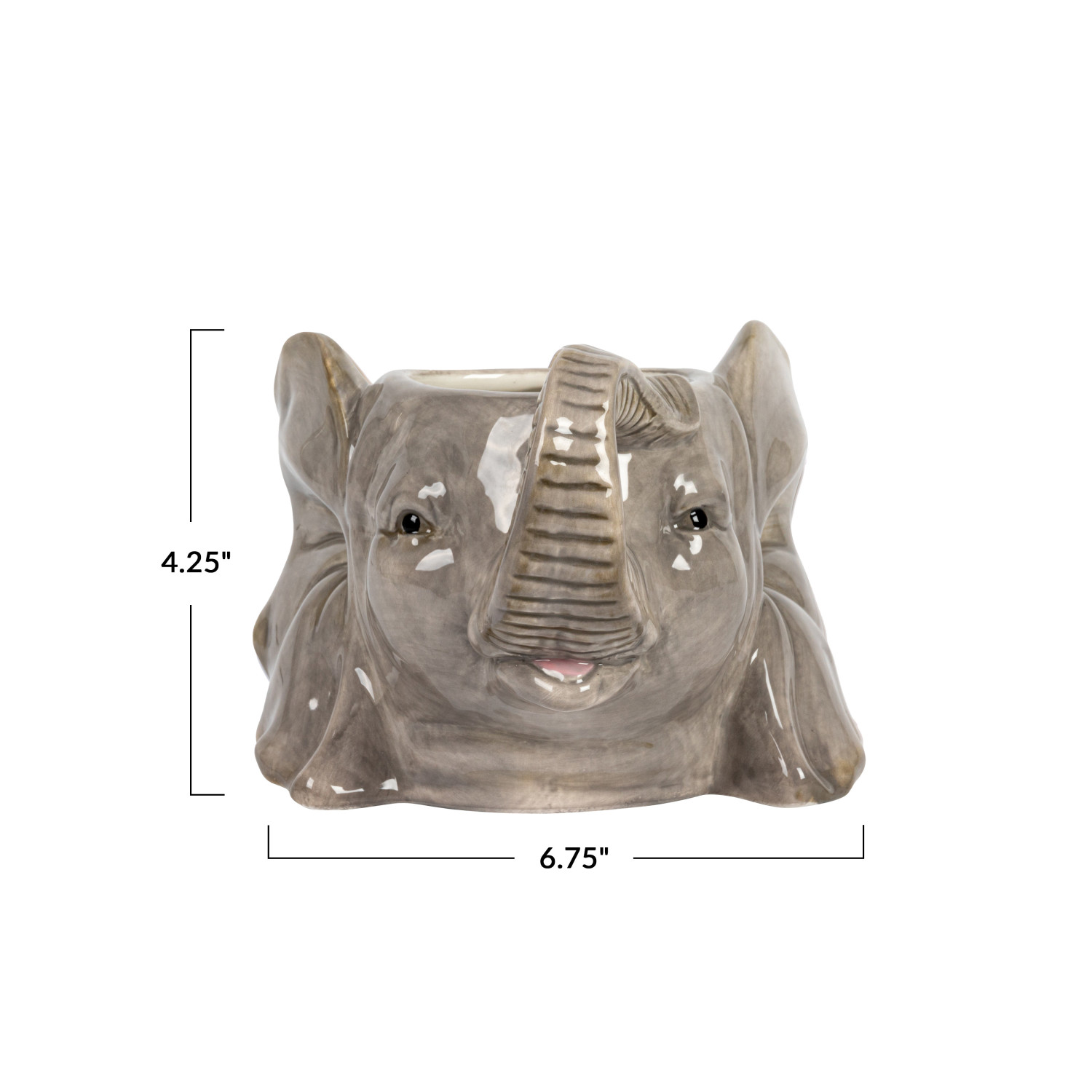 Catalog Name: 6-3/4" Round x 4-3/4"H Ceramic Elephant Head Planter, Grey (Holds 2-1/2" Pot)