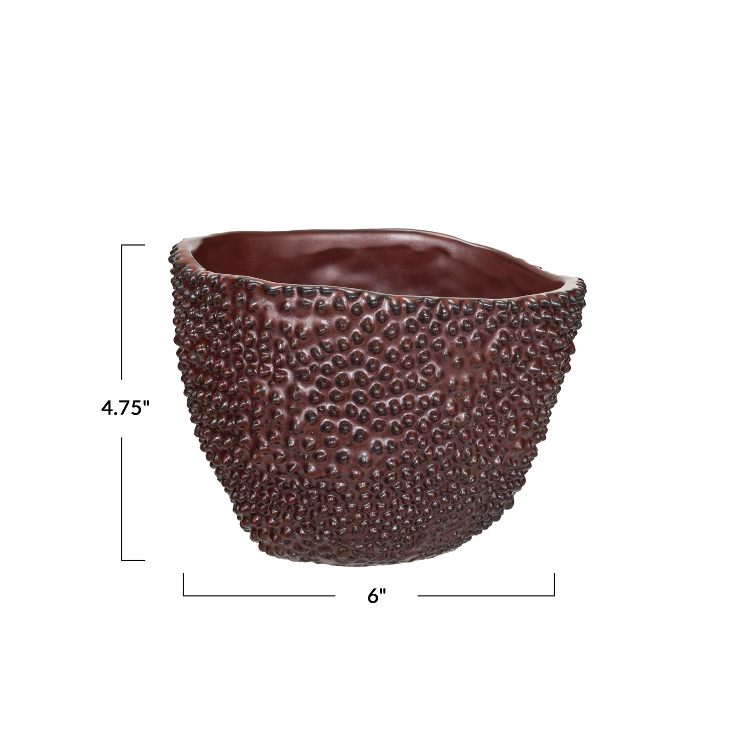 Catalog Name: 6" Round x 4-3/4"H Stoneware Organic Shaped Planter w/ Raised Dots, Reactive Glaze, Brown (Holds 5" Pot) (Each One Will Vary)