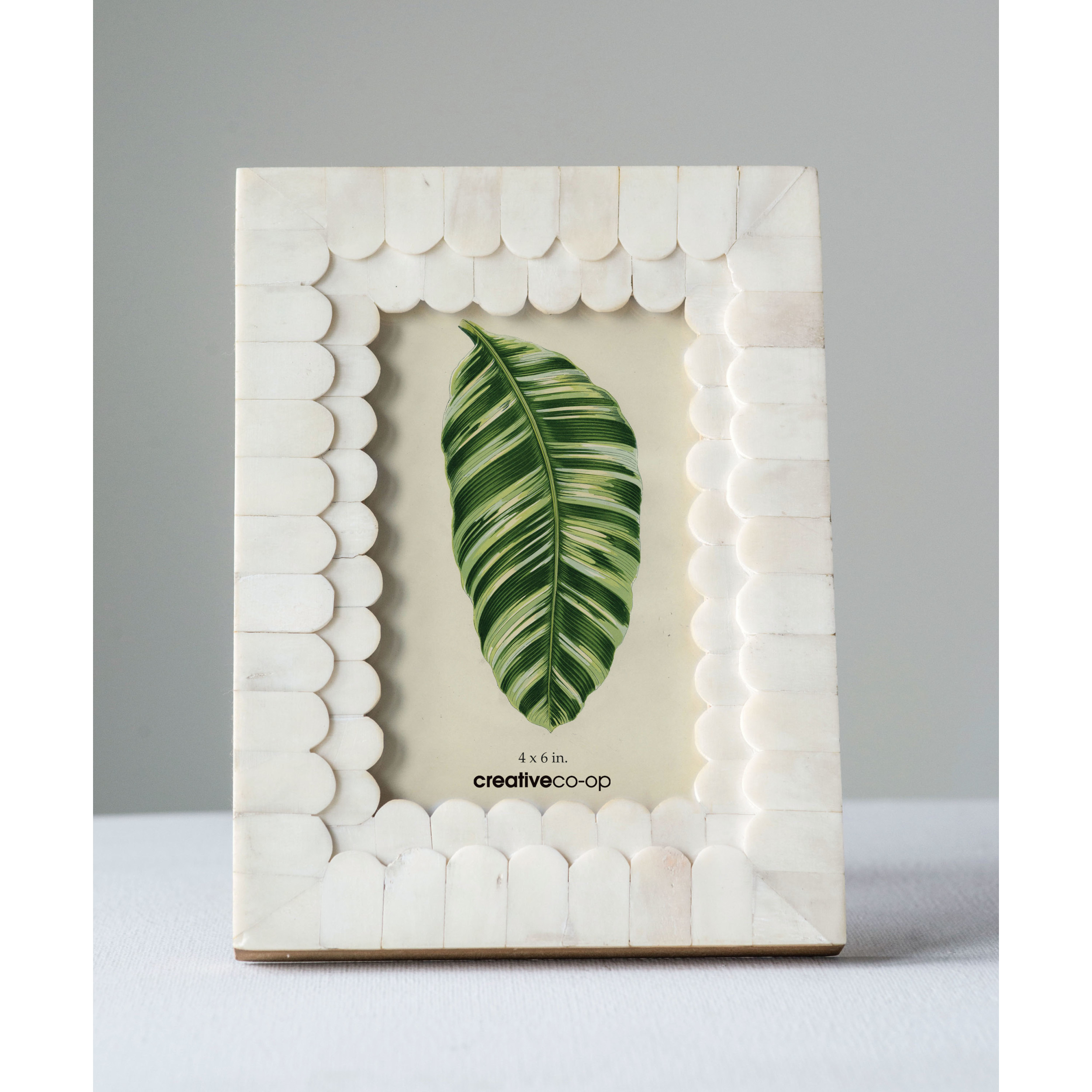 Catalog Name: 6"L x 8"H Bone Scalloped Photo Frame (Holds 4" x 6" Photo)