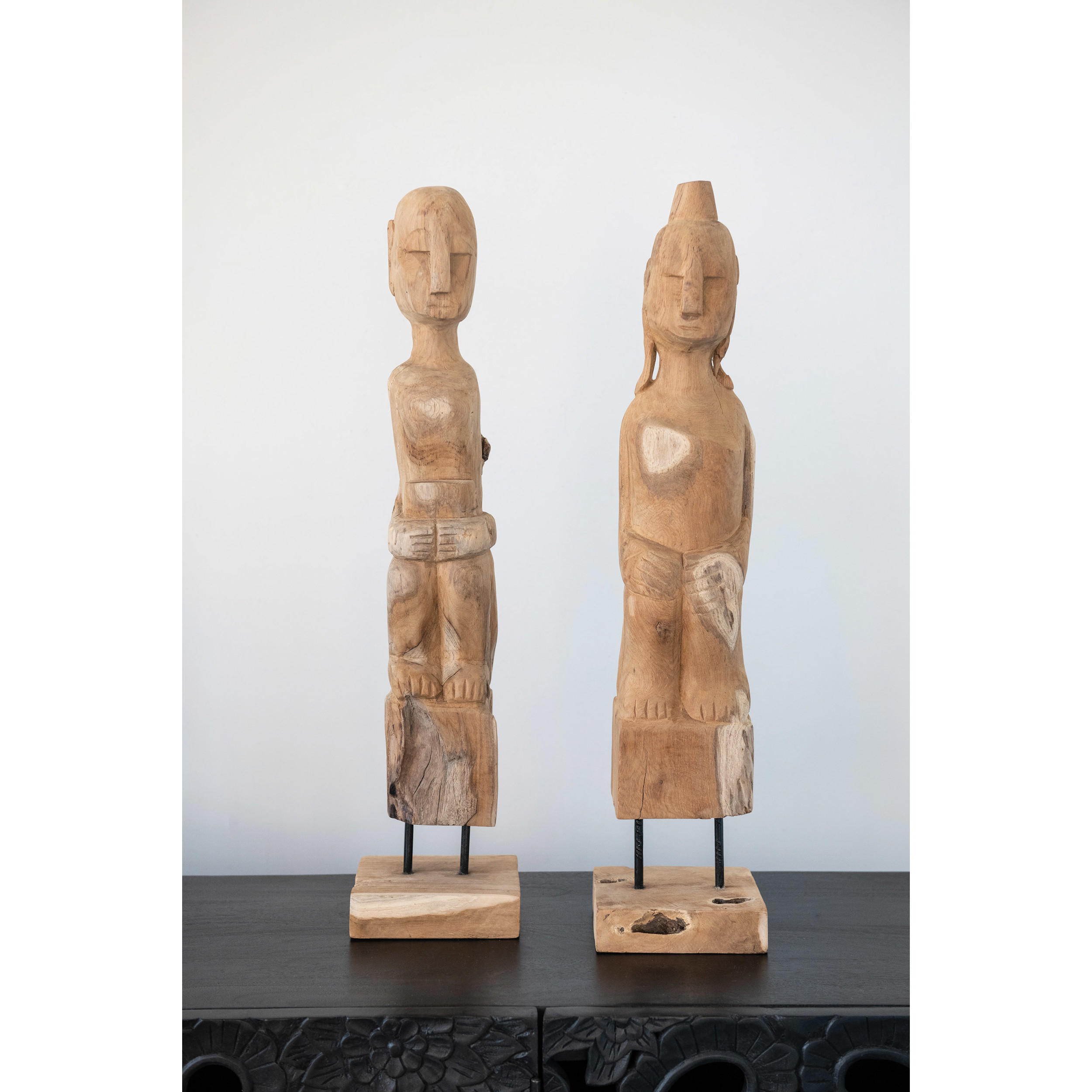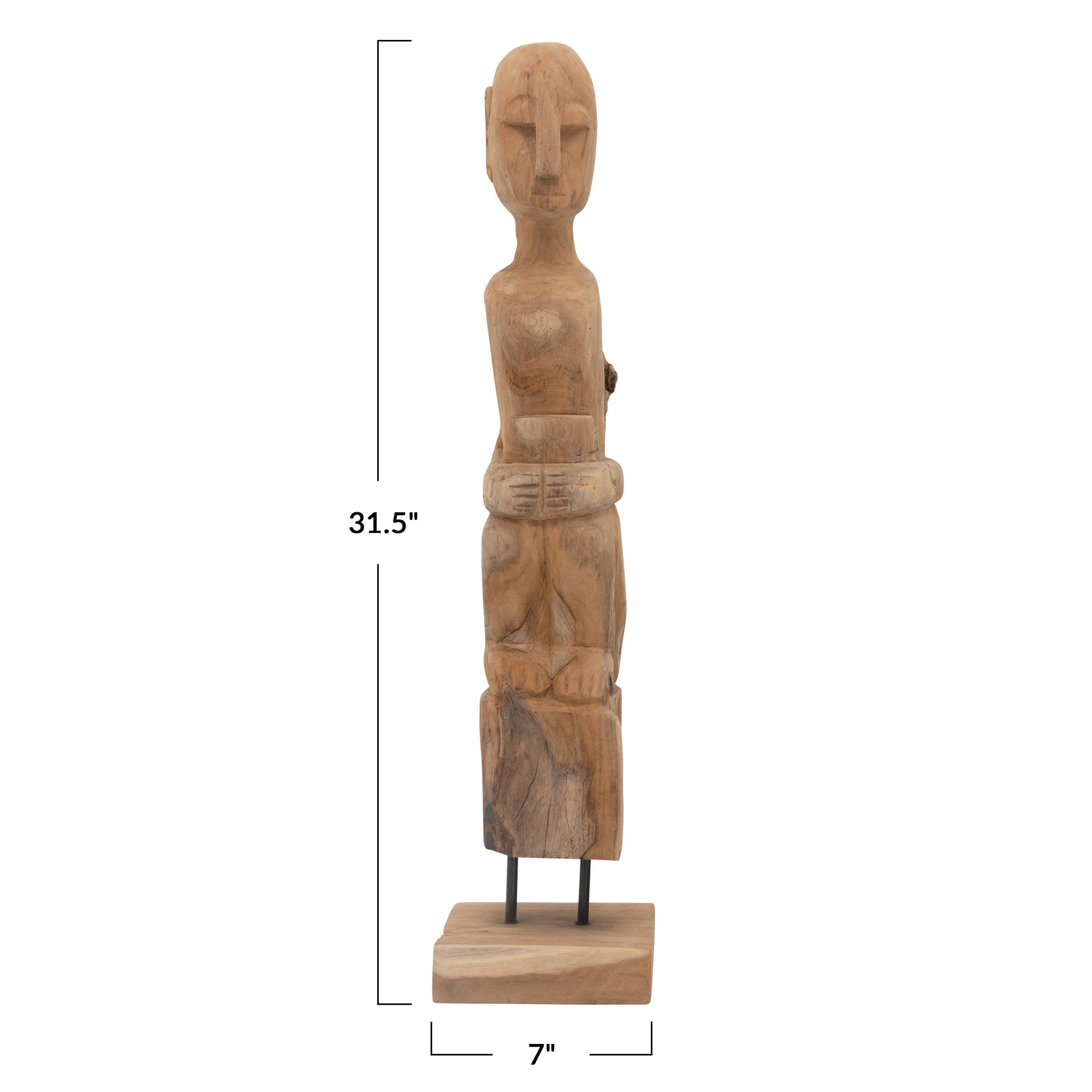 Catalog Name: 7" Square x 31-1/2"H Hand-Carved Teakwood Root Figure on Stand, Natural (Each One Will Vary)