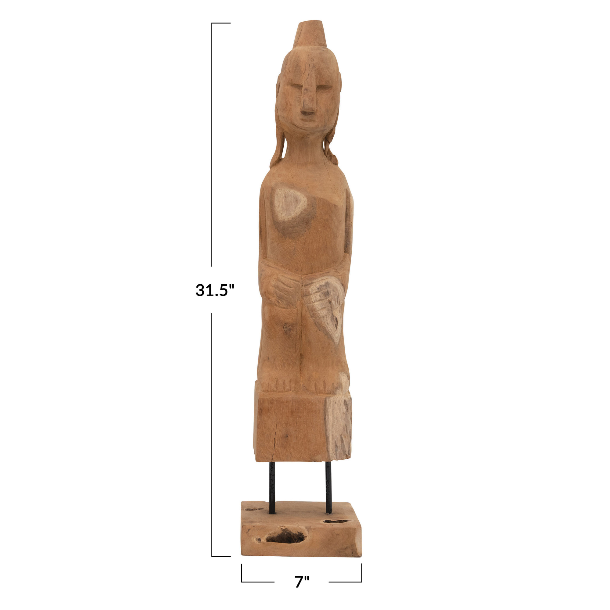 Catalog Name: 7" Square x 31-1/2"H Hand-Carved Teakwood Root Figure on Stand, Natural (Each One Will Vary)