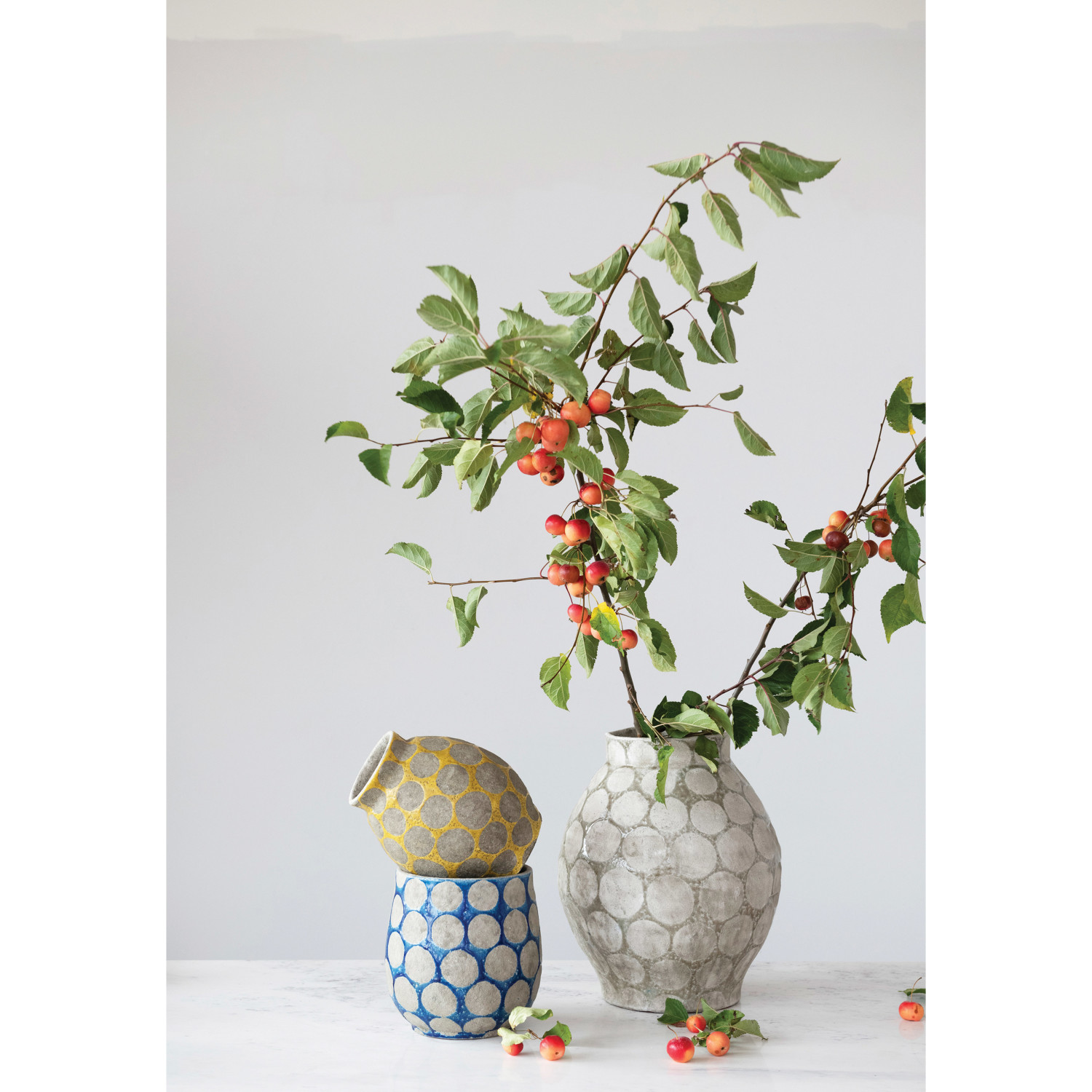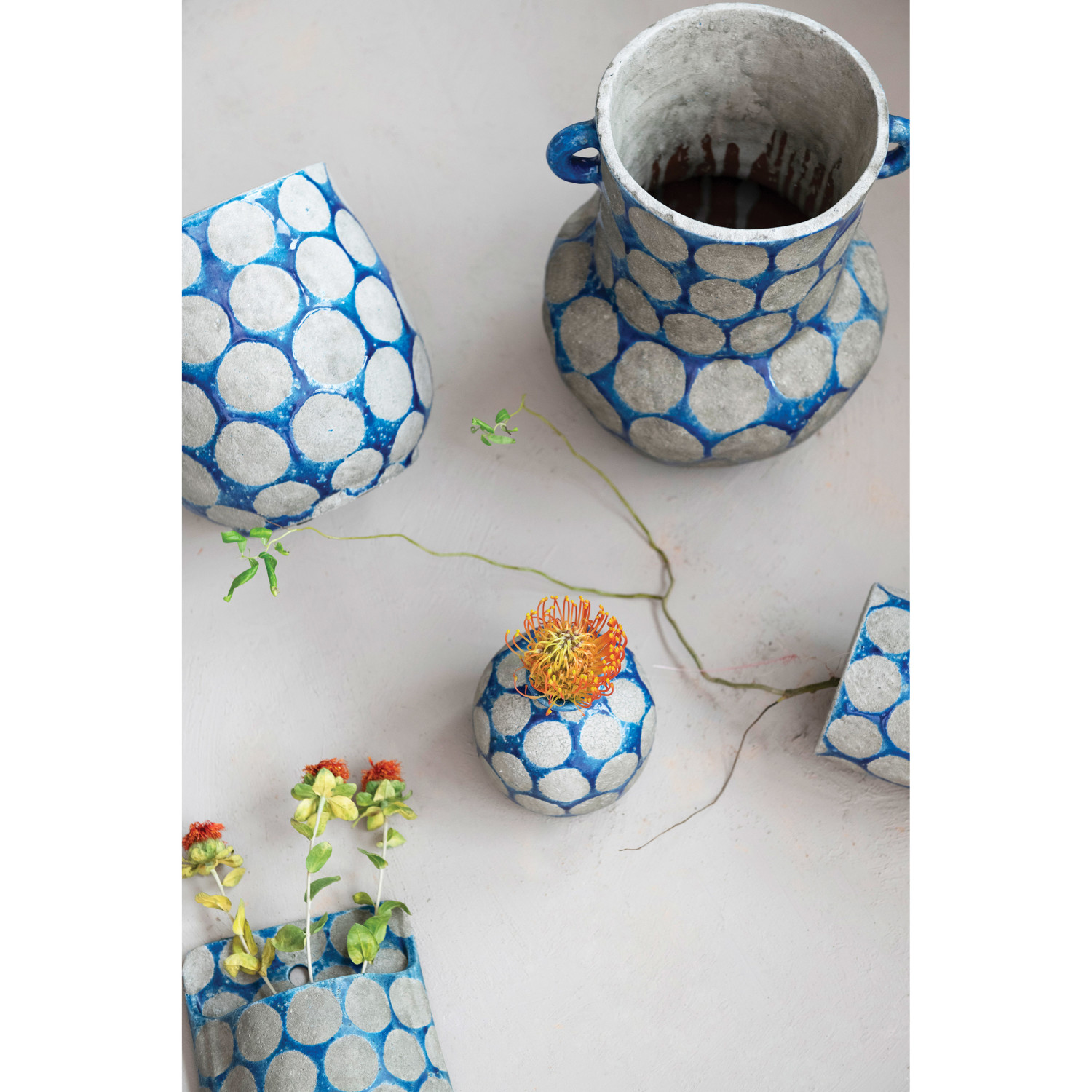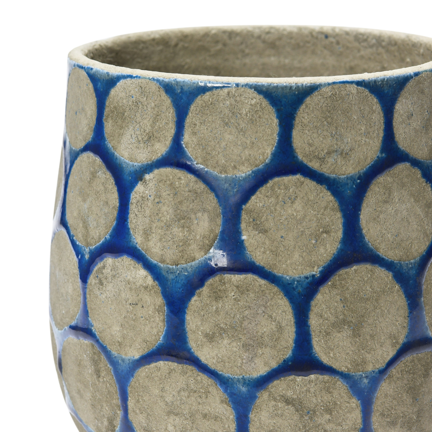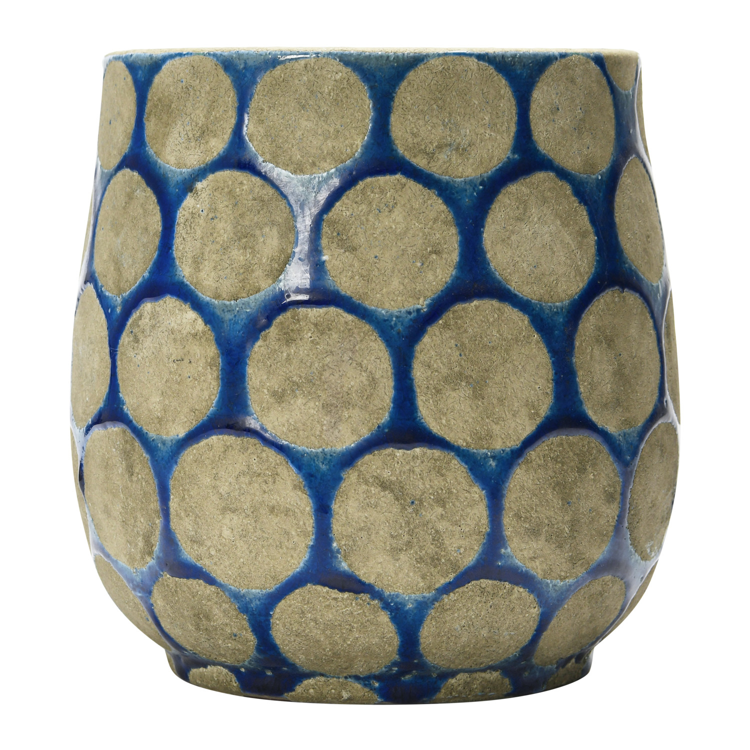 Add some color and style to the home with this terra-cotta planter that features a dark blue and cement color scheme and wax relief dots. This planter is perfect for adding a touch of coastal charm to any style of home décor, from nautical to tropical. The vase is designed for decorative purposes only and does not have drainage holes, so it is suitable for displaying dried or artificial flowers. Made of terra-cotta.