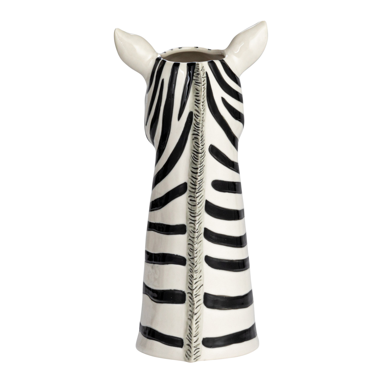 Catalog Name: 6-1/4"L x 5-1/2"W x 12"H Hand-Painted Stoneware Zebra Vase, White & Black