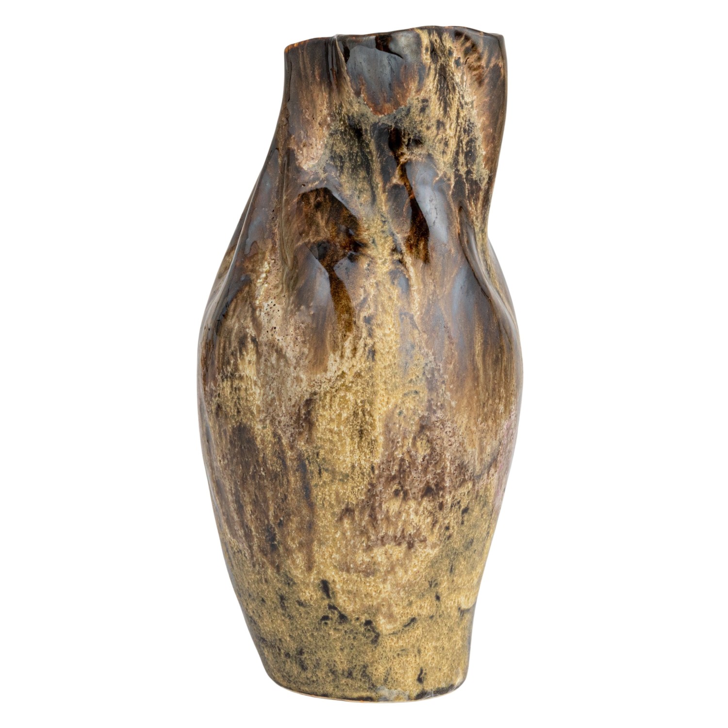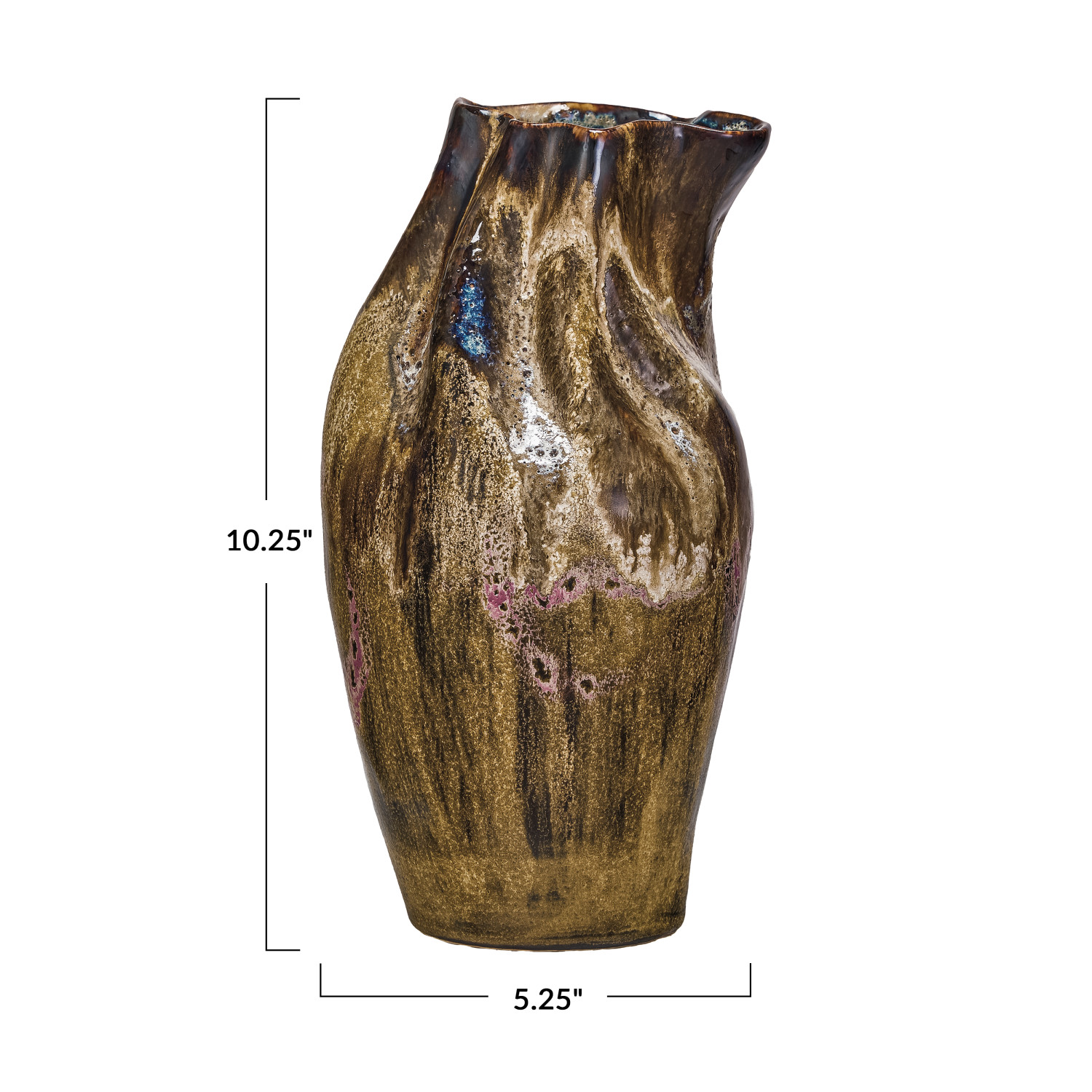 Catalog Name: 5-1/4"L x 5"W x 10-1/4"H Hand-Painted Stoneware Organic Shaped Vase, Reactive Glaze, Multi Color (Each One Will Vary)